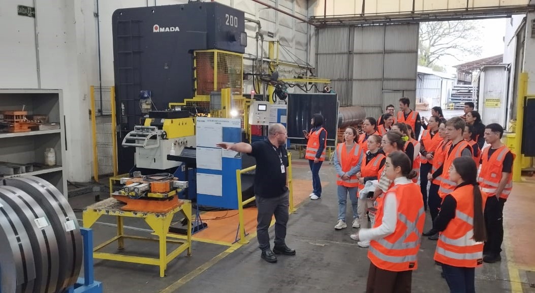 As visitas possibilitaram aos acadêmicos conhecer de perto o funcionamento de empresas de referência nos segmentos metalomecânico e de soluções tecnológicas para o agronegócio e a indústria.