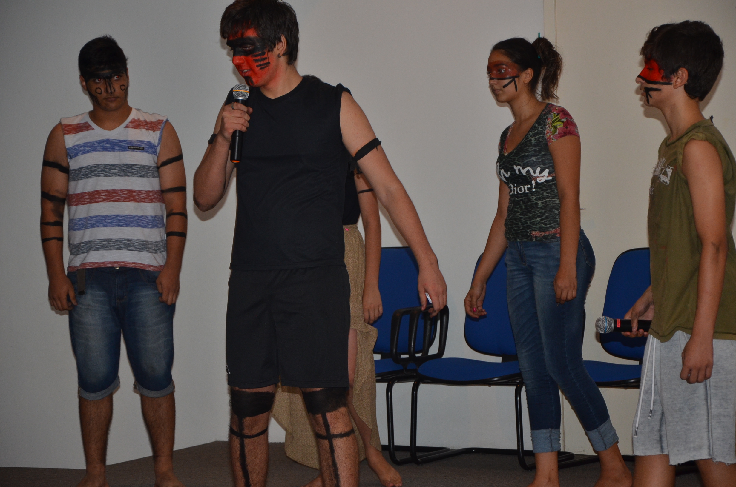 Com a participação expressiva dos alunos, o auditório central do Campus foi palco de uma bela e dinâmica atividade cultural, na qual um grupo de alunos idealizou e realizou a exposição de músicas e vídeos, que culminou com leituras dramáticas de textos poéticos, em tom de denúncia sobre a realidade dos indígenas brasileiros.