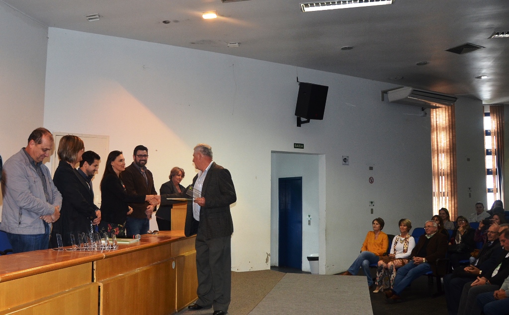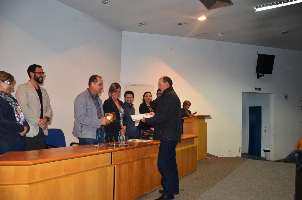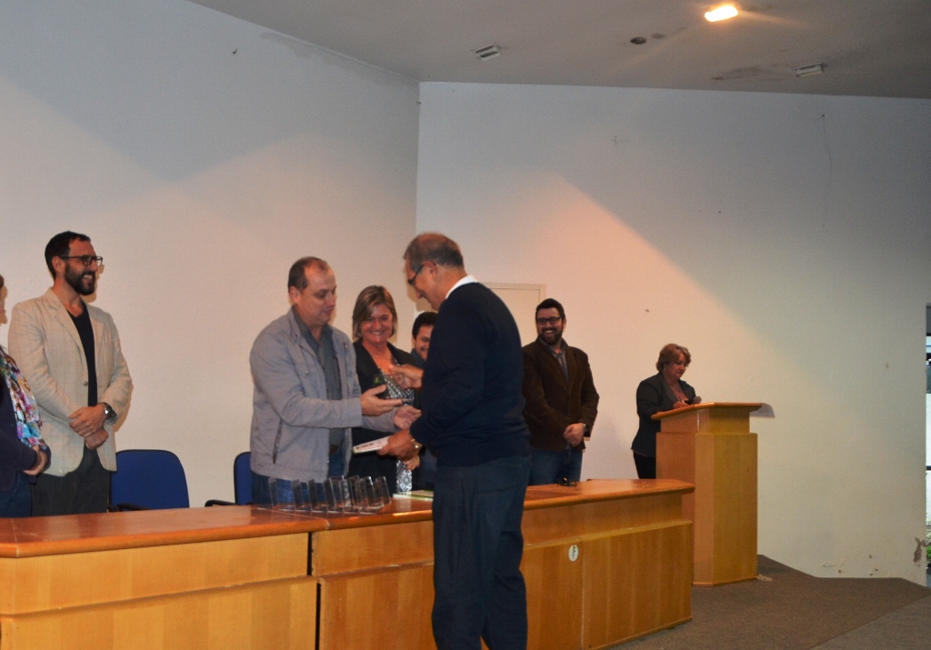Os servidores aposentados do Campus São Vicente do Sul foram homenageados no último dia 26 de abril, em cerimônia inserida na programação da Reitoria Itinerante. O momento foi marcado pela entrega de certificados em reconhecimento aos serviços prestados à administração pública federal e marcante pelas palavras de carinho, personalizadas para cada servidor homenageado, de forma a resumir os aspectos mais acentuados de suas trajetórias  profissionais.