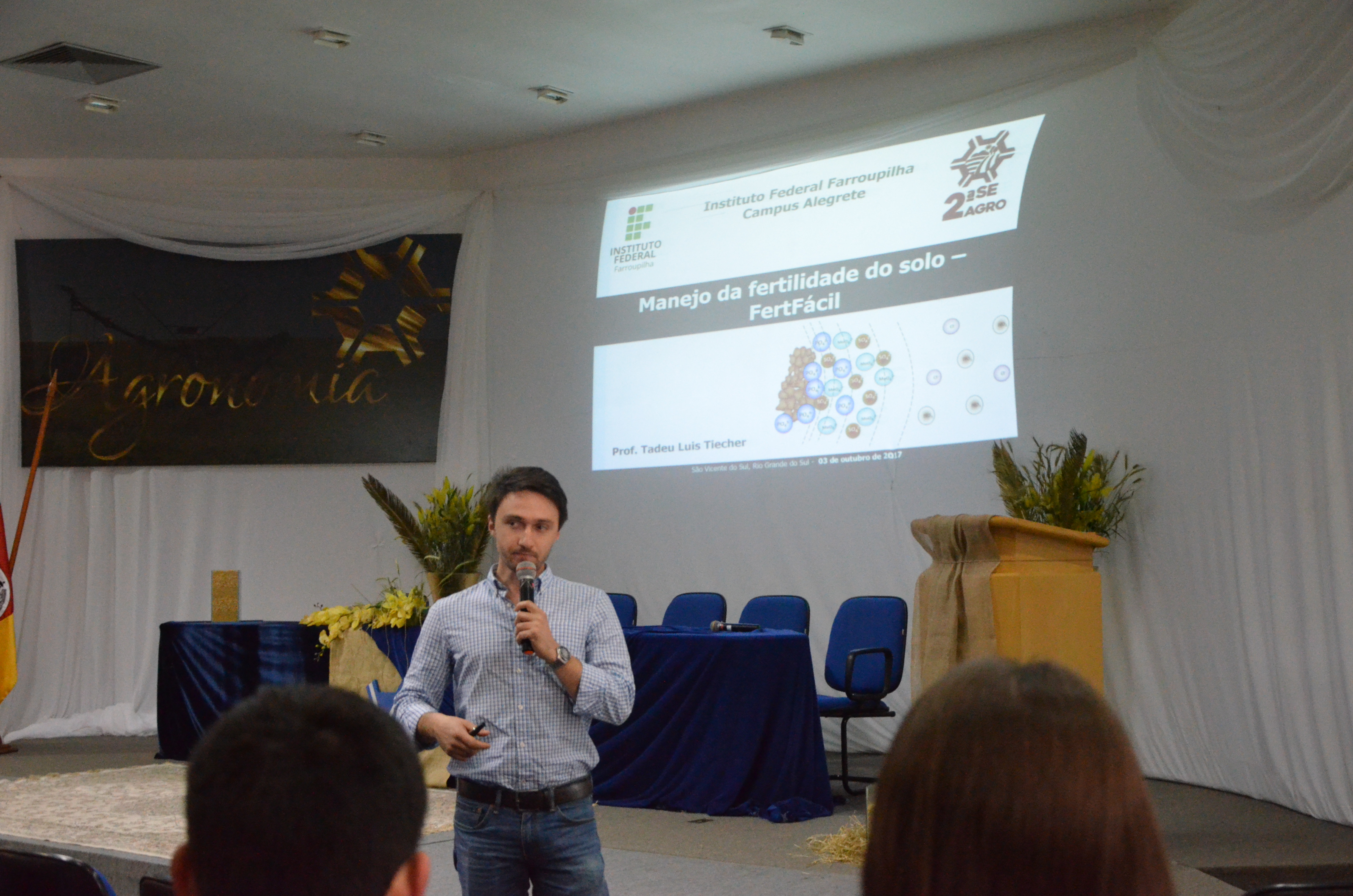 Na manhã de quarta-feira (04/10), a primeira palestra foi ministrada por Elizeu Didoné e Diniz Deuschle, ambos orientados pelo professor Jean Paolo Minella, e abordaram o tema "Perda de solo e água no sistema de produção". Na sequência, o professor da UFSM Nereu Streck ministrou palestra sobre as "Mudanças Climáticas aplicadas à agricultura". Na quinta-feira (05/10) a palestra foi ministrada pelo professor da UFSM Ênio Marchesan, que tratou das "Tecnologias de arroz e soja na várzea". A Semana Acadêmica encerrou com uma homenagem prestada ao Programa "A Voz do Campo", estando representado pelo comunicador Marcelo Brum, que, na ocasião, recebeu a homenagem dos acadêmicos do Curso de Agronomia. Posteriormente, o comunicador relatou sobre o trabalho desse Programa no agronegócio.