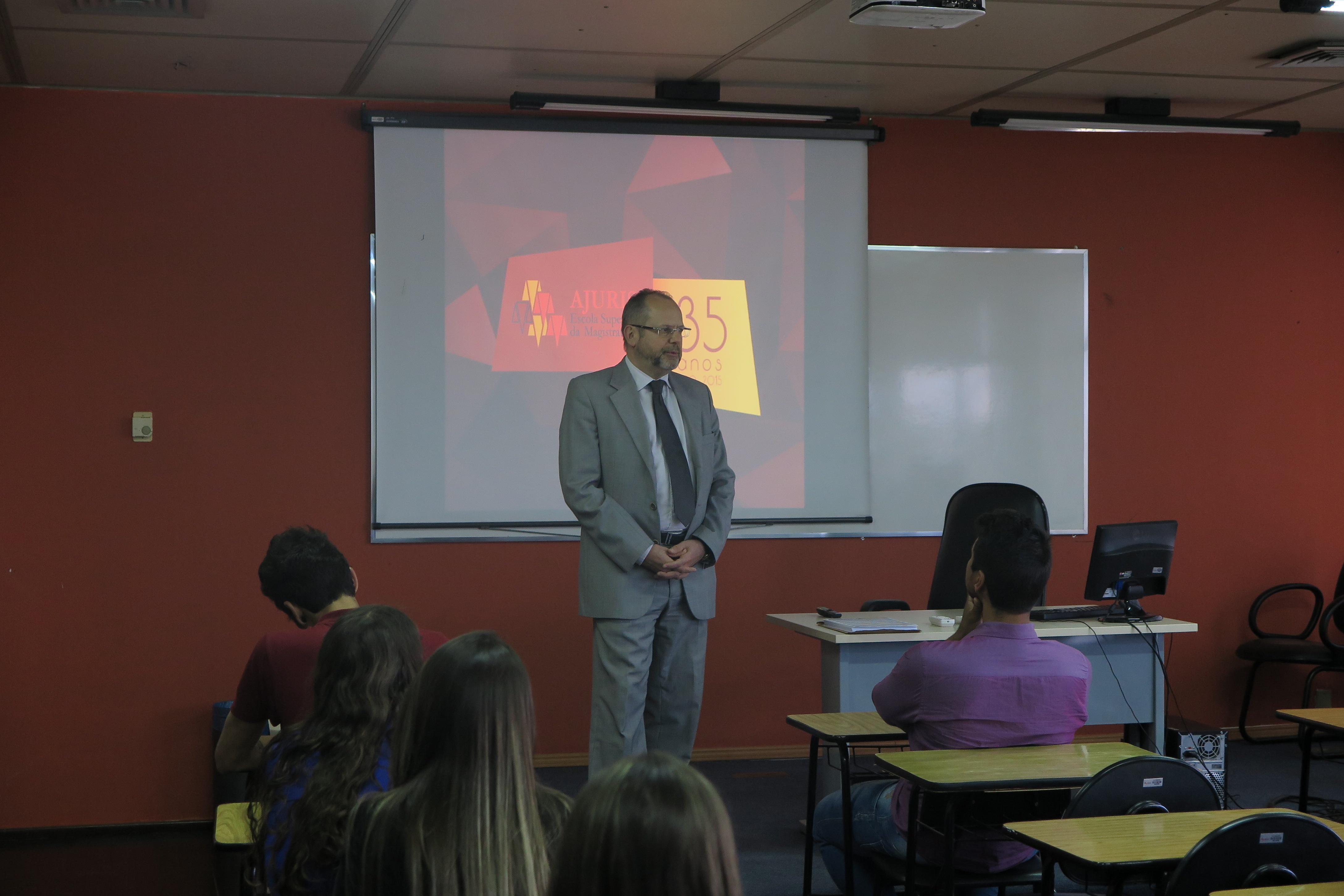Os alunos foram recebidos pelo Diretor da Escola, Desembargador Cláudio Luís Martinewski, que ao apresentar o funcionamento da Instituição, ressaltou aos visitantes, a convergência entre o Direito e as carreiras administrativas. “É do Direito que emanam todos os deveres dos administradores e gestores públicos” frisou o Dr. Martinewski.