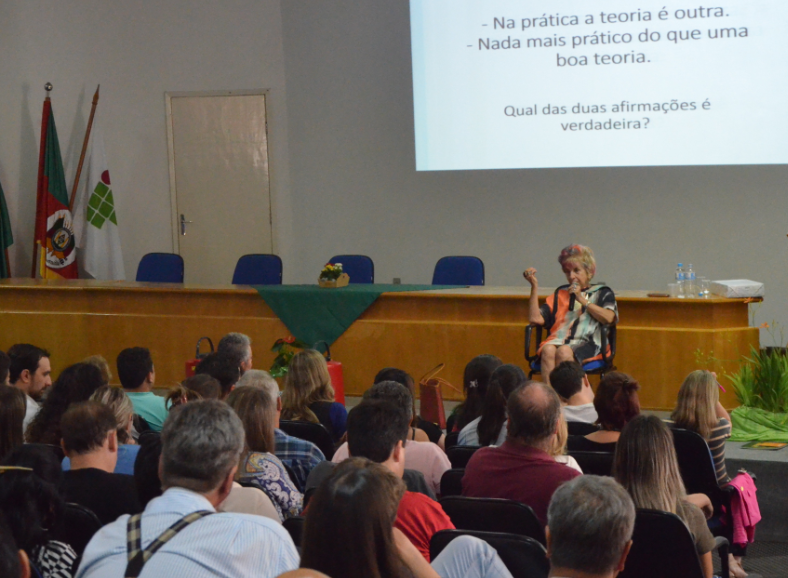 Nos dias 15 e 16 de fevereiro, a formação continuada dos professores teve a contribuição da Profa. Dra. ESTHER PILLAR GROSSI, (GRUPO DE ESTUDOS SOBRE EDUCAÇÃO, METODOLOGIA DE PESQUISA E AÇÃO/Porto Alegre), a qual abordou o tema “Aprendendo a Ensinar a Todos”. A explanação muito didática da Profa. Esther tratou de uma perspectiva inclusiva, considerando as múltiplas competências e, ao mesmo tempo, aliando teoria e prática.