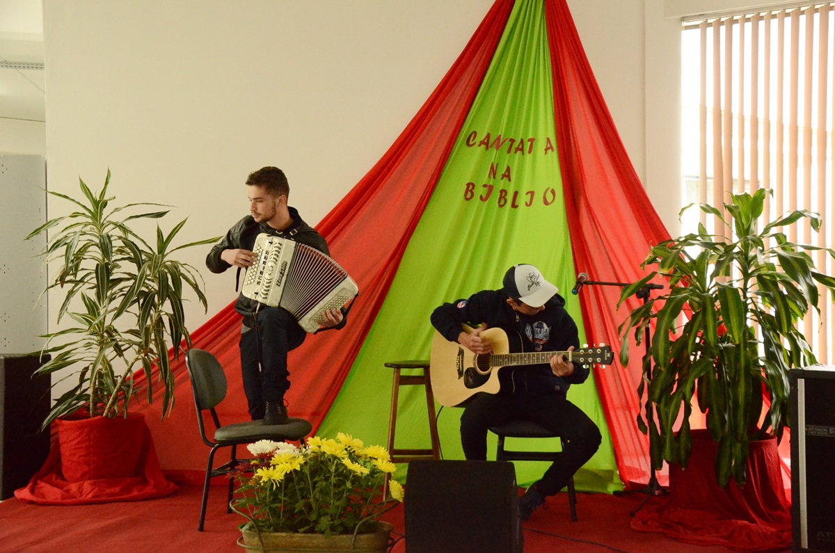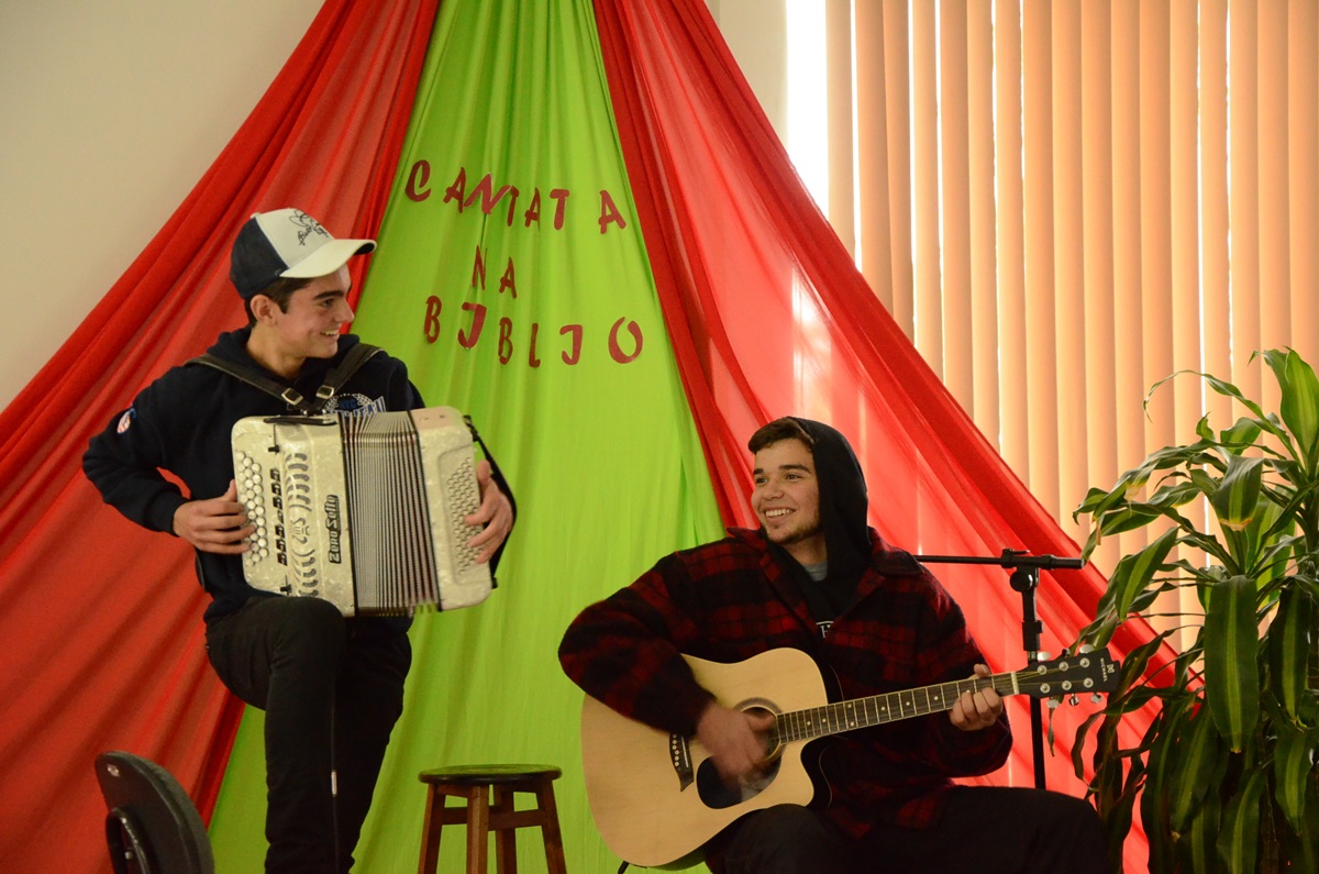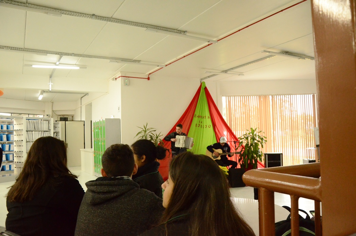 Cantata na biblioteca leva música a comunidade escolar durante o intervalo do almoço