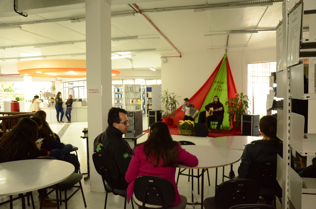 Na última quarta-feira, 4 de julho, durante o intervalo do almoço, a Biblioteca Prof. Ariovaldo Flores, do Instituto Federal Farroupilha - Campus São Vicente do Sul, realizou sua primeira Cantata, de forma a oferecer à comunidade escolar um local e um horário diferenciados para apreciar boa música e tomar um chocolate quente.