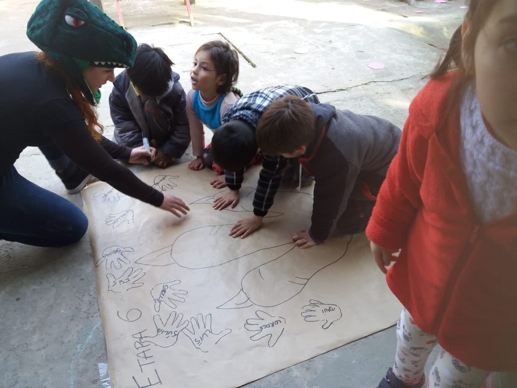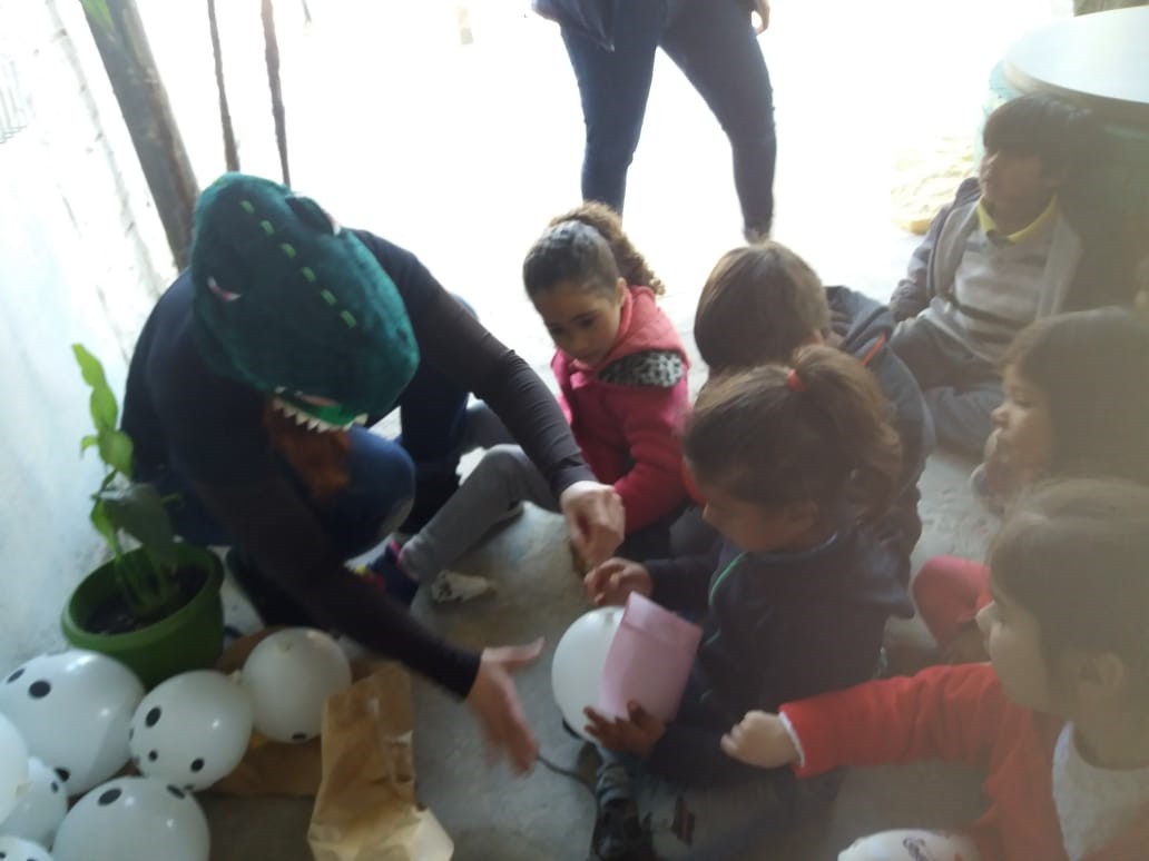 Na última sexta feira (17 de agosto), as crianças da Etapa 6 da Escola Tia Nina, no bairro Francisca Tarrago, tiveram uma atividade diferente: Participaram de um dia Jurássico. A convite da professora da turminha, a professora Drika Vieira Lima do IFFAR organizou uma série de atividades relacionadas a dinossauros, como sessão de filme, identificação de pegadas, construção de dinossauros com balão de festas e quebra de ovos de dinossauros. O IFFAR agradece às professoras e toda a equipe da escola pela recepção.