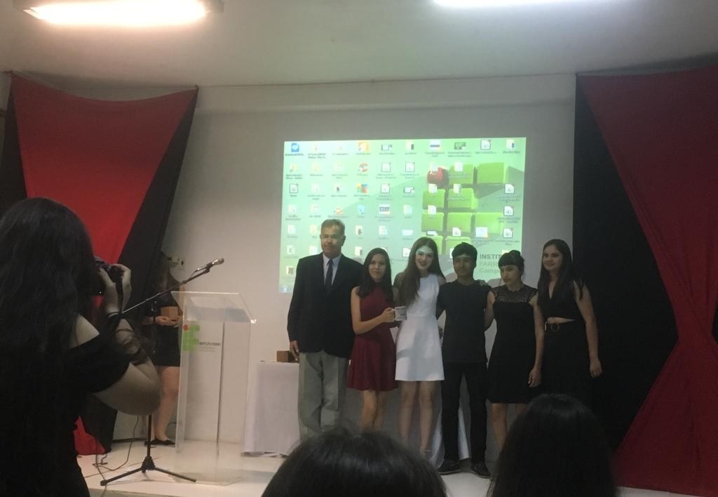 Os alunos João Pedro Chimendes, Luísa Inda, Ligia Lima, Luciane Medina e Cínthia Benites estiveram presentes no Campus São Borja na noite do dia 06/12 para receber a premiação do Primeiro Concurso de Curtas do IFFAr Uruguaiana, pelo dia Nacional de Segurança e Saúde nas Escolas. O Evento aconteceu na premiação de fechamento do ano do projeto Cine Campus/SB.