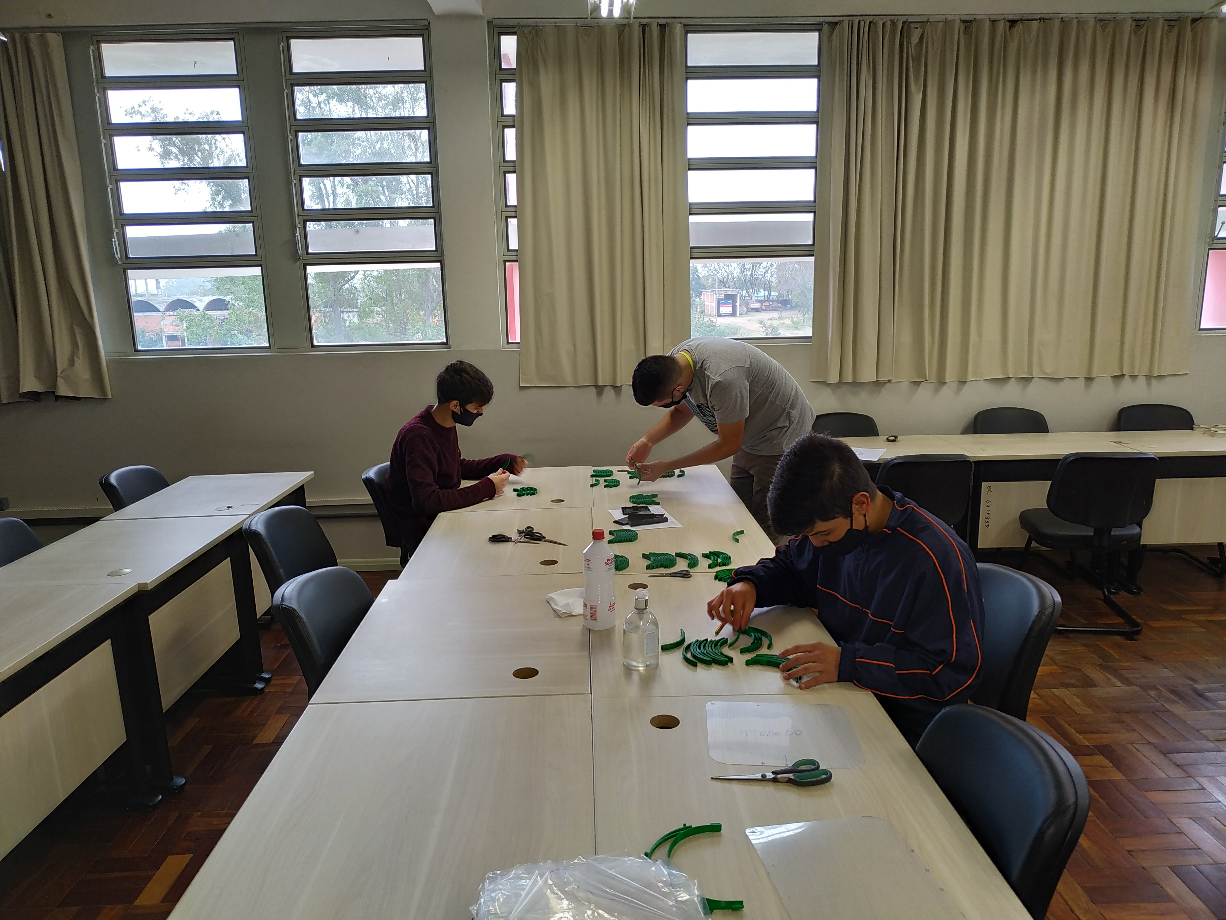 Segundo os professores Jhonathan Silveira, Leandro Dallanora e Thiago Krug, professores do Iffar e coordenadores da ação, o projeto, Desenvolvimento de protetores Faciais com o uso de Impressoras 3D, iniciou suas atividades no final de julho, com a chegada de uma impressora 3D ao campus. A equipe conta também com a participação de aproximadamente 15 alunos voluntários. Desde então, grupos formados por 3 alunos e 1 professor atuam diariamente no desenvolvimento de protetores faciais, que auxiliam na redução do contágio da COVID-19. Na última quarta-feira, 16/09, o projeto fez a entrega de 120 protetores faciais para o Hospital Santa Casa de Caridade de Uruguaiana, para auxiliar na proteção dos profissionais de saúde. O projeto tem como meta atingir a entrega de mais 180 protetores faciais para instituições de saúde, a fim de contribuir com o combate à doença no município.