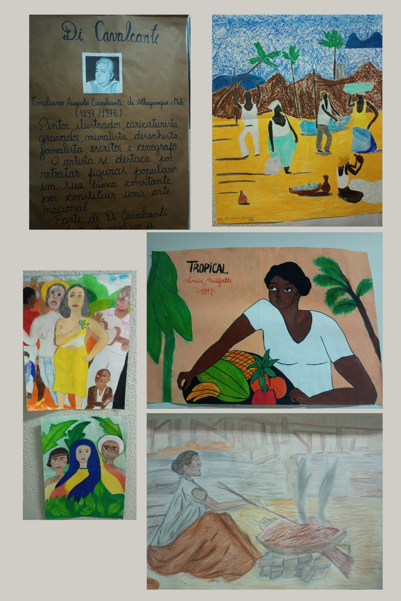 Para finalizar o mês da Consciência Negra, entre as ações do NEABI, a Professora de Arte, Márcia Dall’Agnoll organizou a Mostra artística sobre a representação do negro e da negra na arte brasileira. As obras dos artistas Arthur Bispo Do Rosário, Rubem Valentim, Abdias Do Nascimento, Mestre Didi, Heitor dos Prazeres, Tarsila do Amaral, Di Cavalcanti, Anita Malfatti, Lavar Segall, Cândido Portinari e Lasar Segall que retratam a arte moderna e inovadora com temáticas referente as religiões Afro-Brasileiras, as favelas, as festas populares e a formação do povo brasileiro foram reproduzidas pelos alunos dos Cursos Integrados em formato de pintura, desenho, cartazes, bordados e permaneceram em exposição nos corredores do campus.