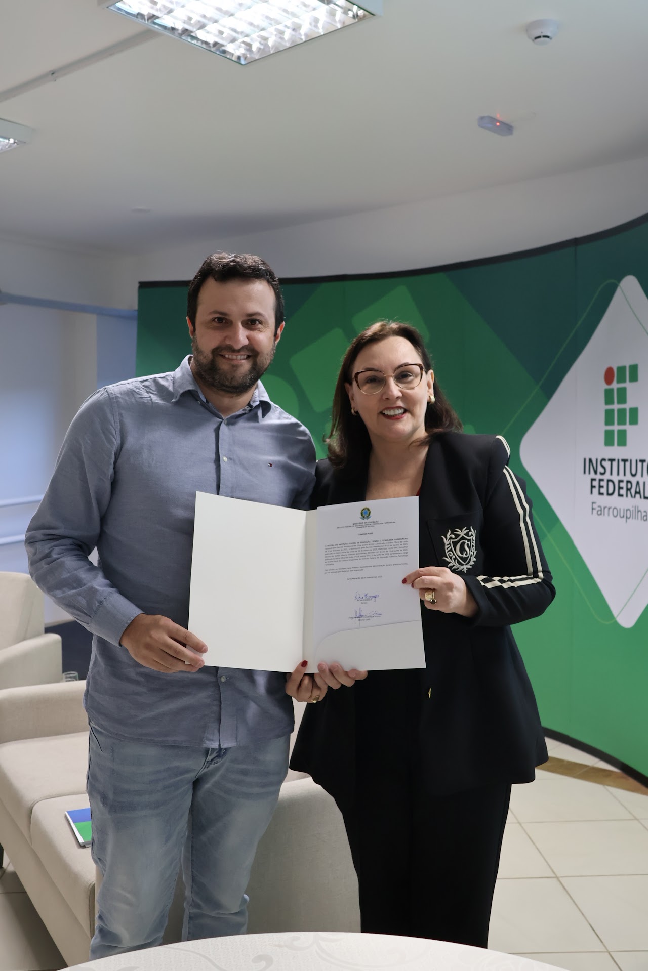Na última quinta-feira, 11 de setembro, o Instituto Federal Farroupilha (IFFar) deu início ao Módulo II do Seminário de Formação de Gestores, realizado na Reitoria, em Santa Maria. A programação foi marcada pela posse dos novos diretores-gerais (Gestão 2025 - 2028) dos campi da Instituição. No Campus Uruguaiana, assumiu a Direção-Geral o professor Jhonathan Alberto dos Santos Silveira, que estará à frente da gestão acompanhado de sua equipe diretiva: Louise Pinho – Diretora de Ensino, Pesquisa e Extensão; Diely Valim – Diretora Substituta de Ensino, Pesquisa e Extensão; Maurício Sanchotene – Coordenador de Administração, Planejamento e Desenvolvimento Institucional; Pablo Viegas – Diretor-Geral Substituto. O Seminário de Formação de Gestores, composto por IV módulos, tem como propósito qualificar a atuação das equipes diretivas do IFFar, contribuindo para o fortalecimento da gestão institucional e para a melhoria contínua do atendimento à comunidade acadêmica e dos processos administrativos nos campi.