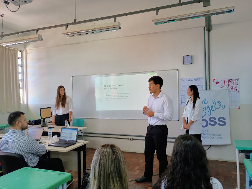 No sábado do dia 18 de Outubro aconteceu a etapa local da competição de empreendedorismo e inovação do IFFAR o Bye Bye Boss. Neste ano 20 equipes se inscreveram entre as modalidades Inovação Tradicional e Educação (Edutech) e no final uma equipe de cada uma das modalidades foi escolhida. A banca avaliadora foi composta por membros externos pertencentes ao Ecossistema Local de Inovação: Bruno Luz – Diretor de Inovação do Município, Guilherme Perlin- Agente Local de Inovação e Igor Rodrigues – fundador do Alerta Aí empresa residente na Incubadora do IFFAR. Foram classificadas para a Etapa Final, em Santa Rosa dia 6 de novembro, as equipes SaniBov dos estudantes do técnico integrado em informática e o do técnico integrado em administração Verlei Tedy Moreira Filho, Mateus Cuty , Cristian da Silveira Lopes na categoria Inovação Tradicional e na categoria Educação as estudantes do curso técnico em administração Emilyn Borda Medeiros , Ingrid Ramos da Silveira , Nicólly Vitória Aimon com a InovaEdu. Parabéns a todos os estudantes por todo o empenho e dedicação em mais esta etapa do BBB. O Bye Bye Boss é uma organização do NIT Local em parceria com a Incubadora do IFFAR.