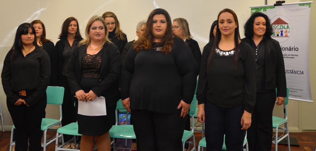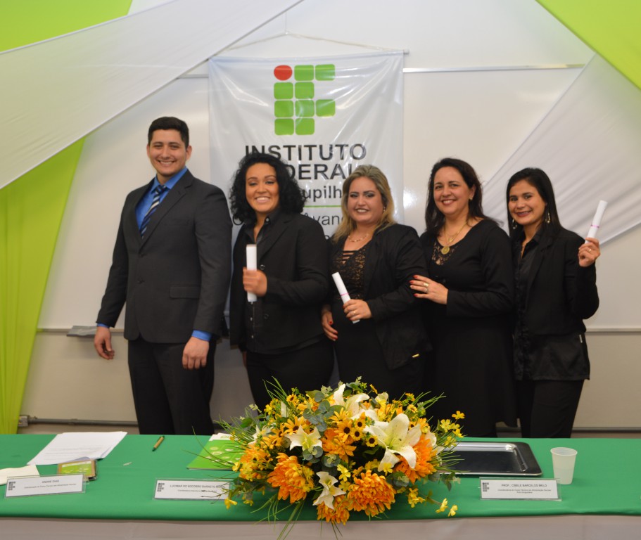 Com muita honra o Campus Avançado Uruguaiana realizou dia 11 de agosto a cerimonia de Formatura do Curso Técnico em Alimentação Escolar subsequente, na modalidade PROFUNCIONÁRIO. A solenidade contou com a presença da Coordenação EAD da Reitoria, representada por Lucimar Moral e André Dias, na qual agradecemos a presença. É com orgulho e satisfação que parabenizamos as formandas, a Coordenadora do Polo Cibele Barcelos Melo e a Tutora Isis Leão pela dedicação e empenho.