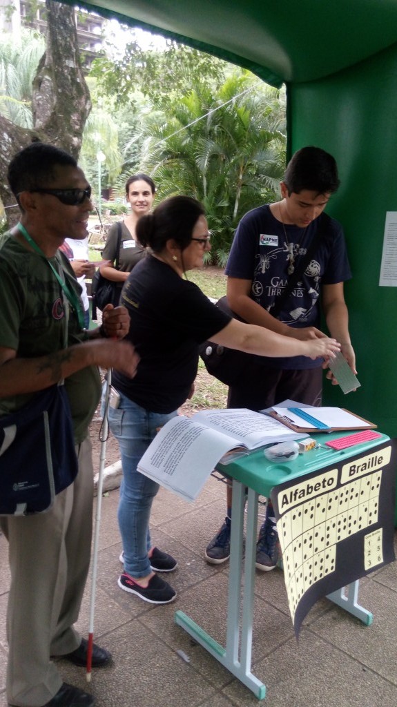 Na tarde do domingo, a comunidade pode desfrutar de exposição de material pedagógico em Braille, Espaço Criança com contação de histórias infantis e Espaço Saúde com aferição de pressão arterial e orientações sobre a prevenção da cegueira.