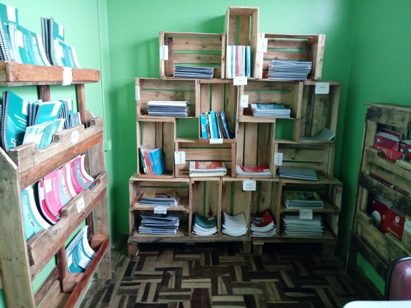 Alunos, ex-alunos e professores do IF Farroupilha - Centro de Referência São Gabriel construiram uma minibiblioteca com materiais reaproveitados. Os materiais disponibilizados vão auxiliar os alunos dos cursos da unidade.