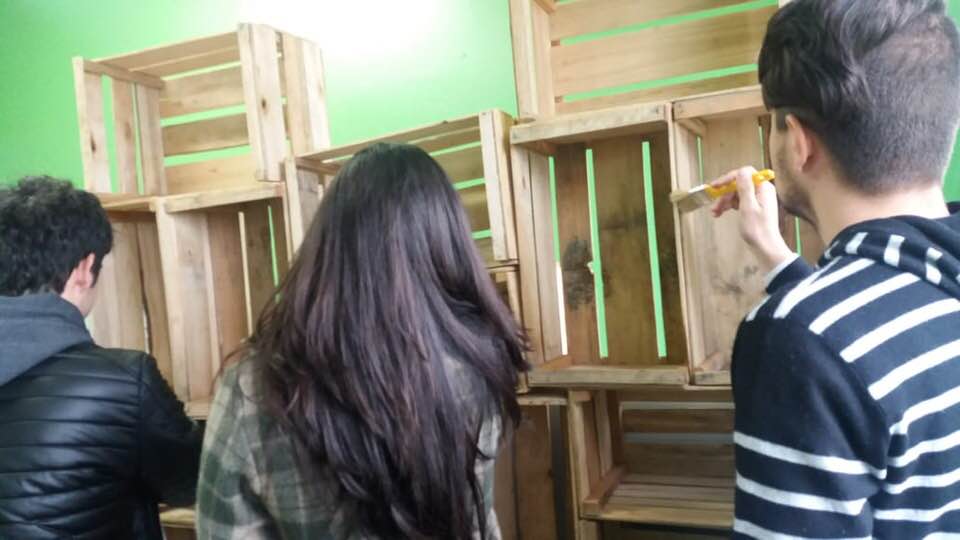 A biblioteca foi construída no Centro de Referência São Gabriel com caixas de frutas e paletes