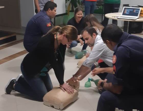 Foto: servidores da reitoria são instruídos a realizar procedimentos de primeiros socorros