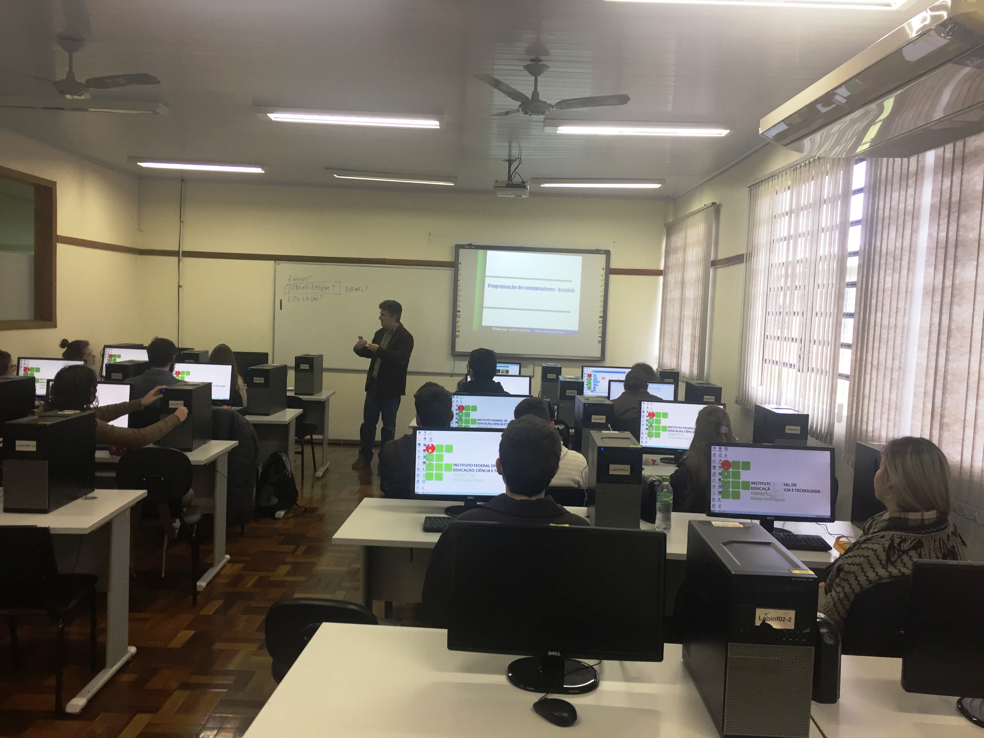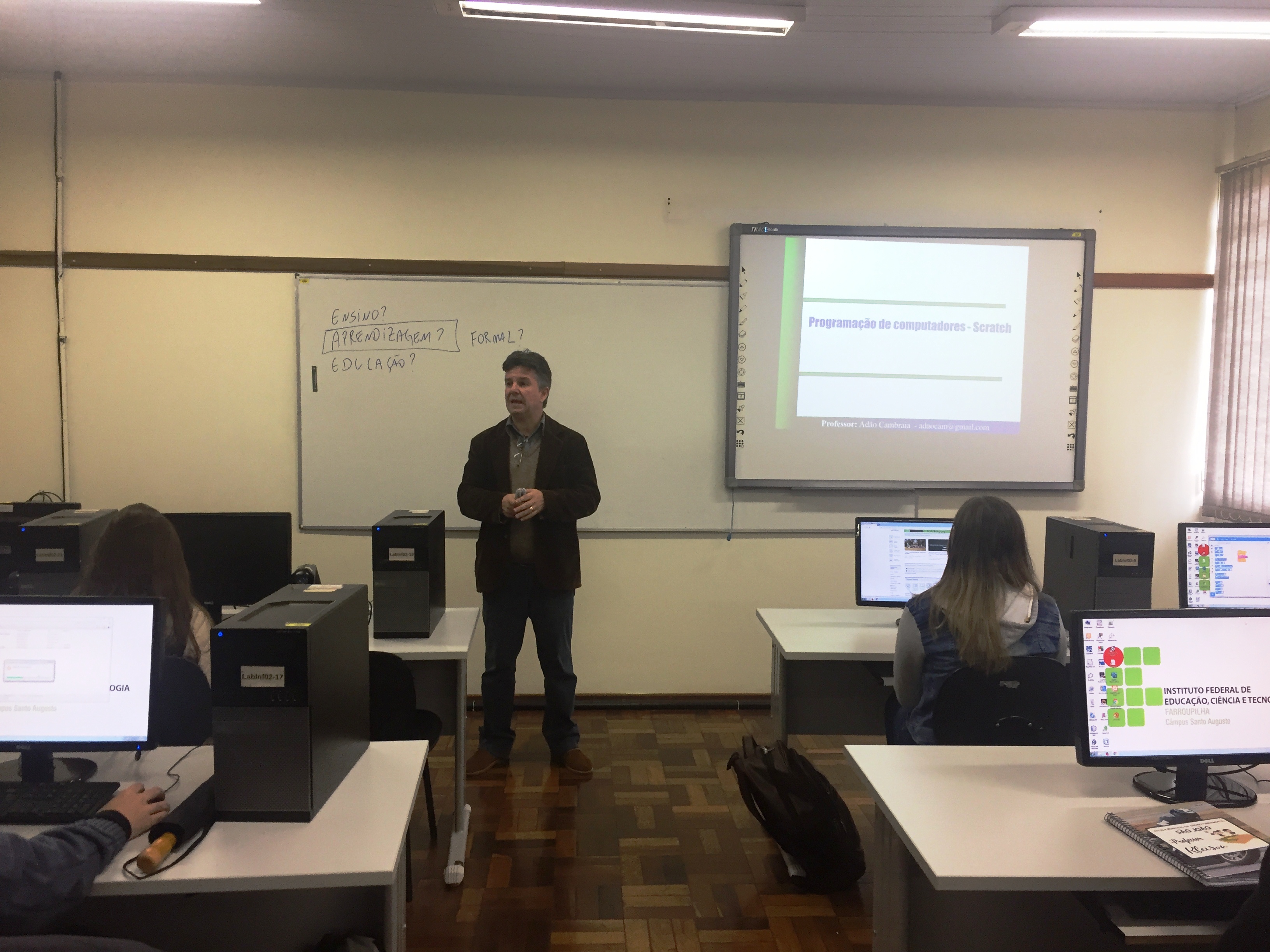 As atividades do projeto iniciaram em junho com oficinas para os estudantes de Licenciatura em Computação e Licenciatura em Ciências Biológicas do Campus Santo Augusto que fazem parte do Programa Institucional de Bolsas de Iniciação à Docência – PIBID, com o objetivo de que as escolas onde estes estudantes atuam também desenvolvam o projeto.