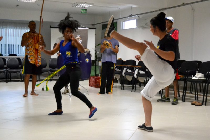 A apresentação foi feita por integrantes da Associação de Capoeira de Rua Berimbau. Antes da prática, Luiz Antônio Loreto, também conhecido como Mestre Militar, explicou as origens da capoeira.