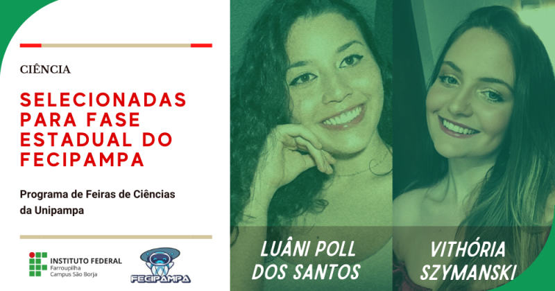 As alunas do 3º ano do Curso Técnico em Informática, Luâni Poll dos Santos e Vithória Szymanski Machado, tiveram seus trabalhos selecionados para a fase estadual do Programa de Feiras de Ciências da Unipampa - Fecipampa 2021, na categoria ensino médio integrado.