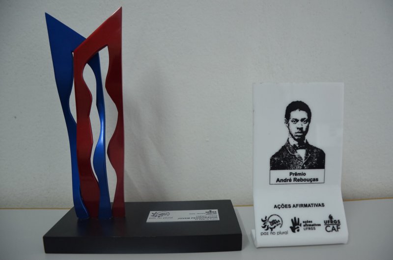 O Instituto Federal Farroupilha - Campus São Vicente do Sul recebeu dois troféus no Salão de Ações Afirmativas da UFRGS, no dia 16 de setembro: Troféu André Rebouças (Destaque de Sessão) e Troféu Destaque Geral. A premiação representa o reconhecimento do trabalho conjunto desenvolvido pela Coordenação das Ações Inclusivas (CAI) juntamente com os núcleos inclusivos NEABI, NUGEDIS e NAPNE. O trabalho “(Re) Conheça seu preconceito: ações, proposições e desconstruções” apresentado pelos professores Letícia Jobim, Liliana Souza de Oliveira e Vitor Ângelo Villar Barreto relata as ações desenvolvidas pelos núcleos inclusivos no campus.