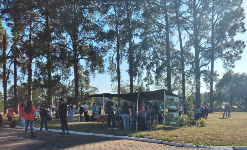 Foto: estudantes do Campus Jaguari foram recepcionados em tendas montadas ao ar livre