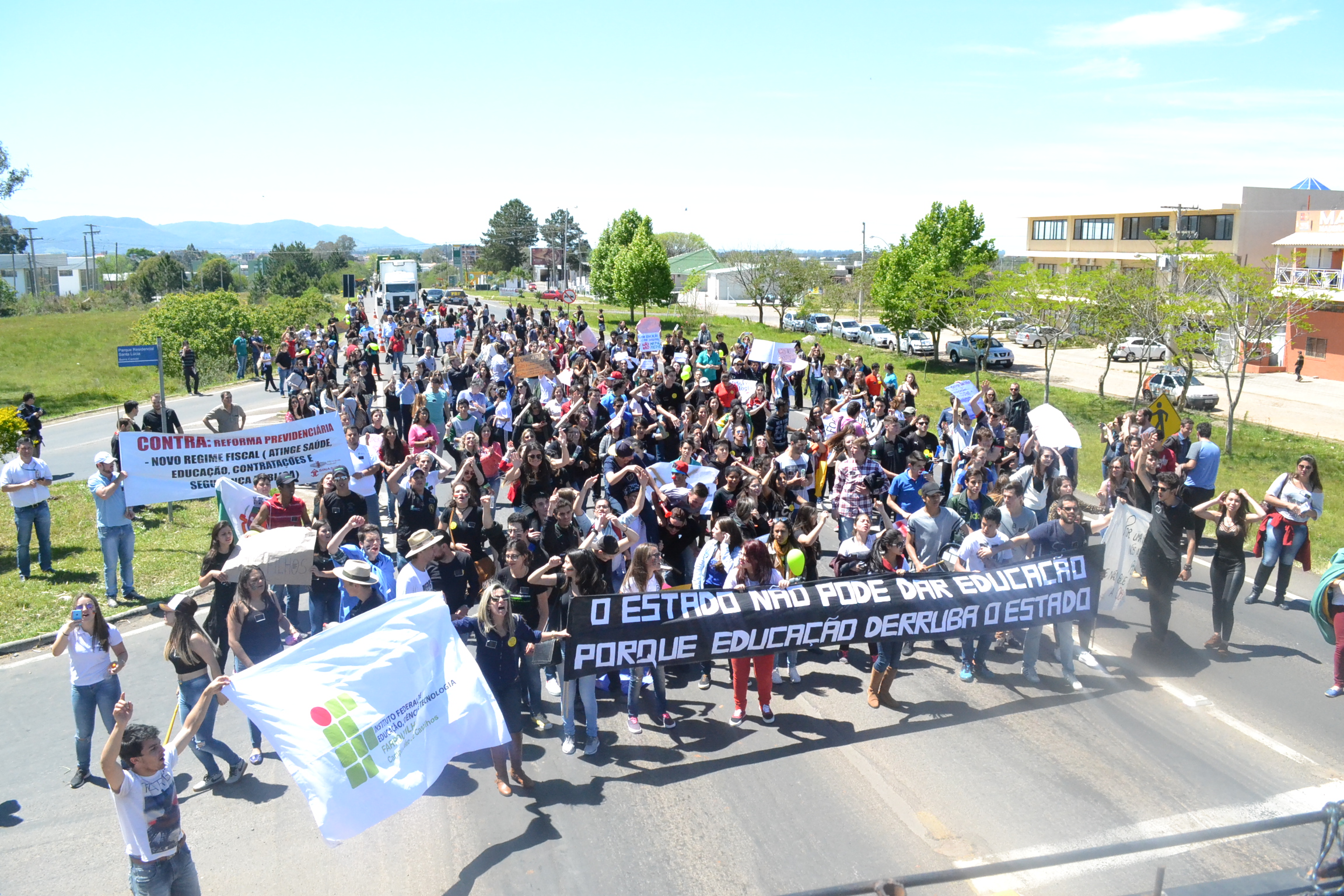Desde o dia 29 de setembro, alunos do IF Farroupilha estão realizando atos em defesa da educação pública e contra o Projeto de Emenda Constitucional 241 (PEC 241), que fixa limites de investimentos, contra a Medida Provisória 746 (MP 746), que reformula o ensino médio e contra o Projeto de Lei 257 (PL 257) que propõe cortes nos direitos trabalhistas.
