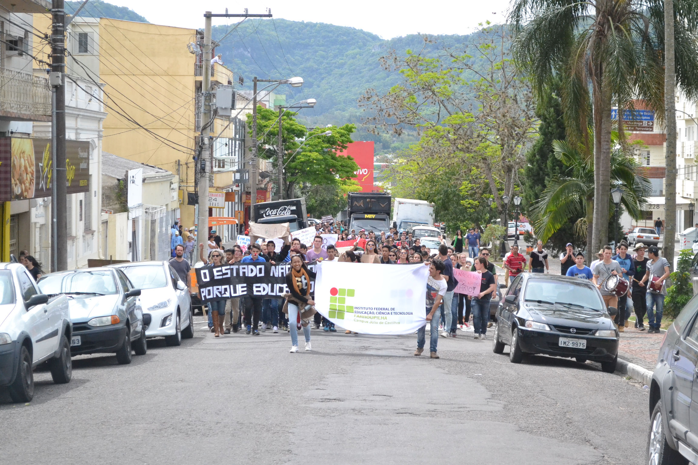 Durante a tarde, a mobilização ocorreu nas ruas centrais de Santa Maria. Os alunos e servidores do IF Farroupilha partiram da Gare, e subiram as ruas Rio Branco e Acampamento.