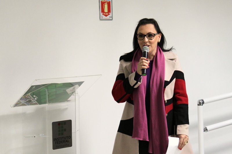 Foto: a pró-reitor da Extesão do IFFar, professora Ângela Marinho, falou sobre a organização do evento e necessidade se pôr ações em prática