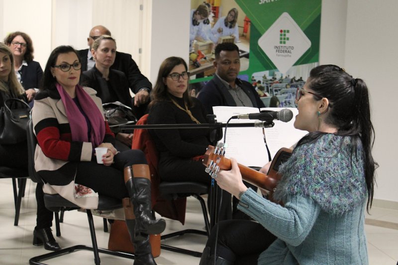 Foto: o evento foi encerrado com uma apresentação cultural da diretora de Gestão de Pessoas do IFFar, Daiana Carpenedo