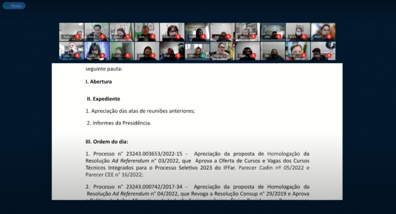 Foto: captura de tela da transmissão da 2ª Reunião Ordinária do Consup.