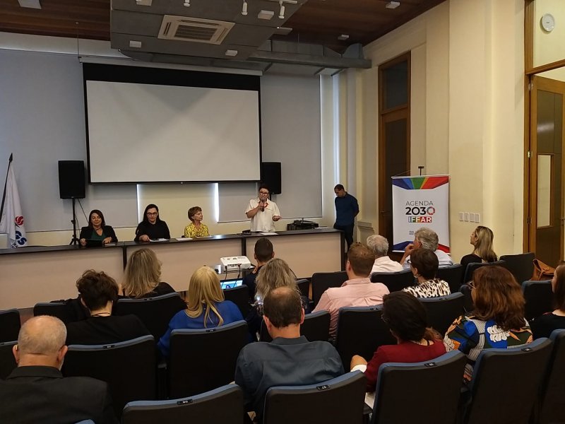Além da pró-reitora de extensão, o IFFar também foi representado pela reitora, professora Nidia Heringer e pelos servidores responsáveis pela Agenda 2030 no IFFar, professora Luciana Dalla Nora dos Santos e Diogo Maus.