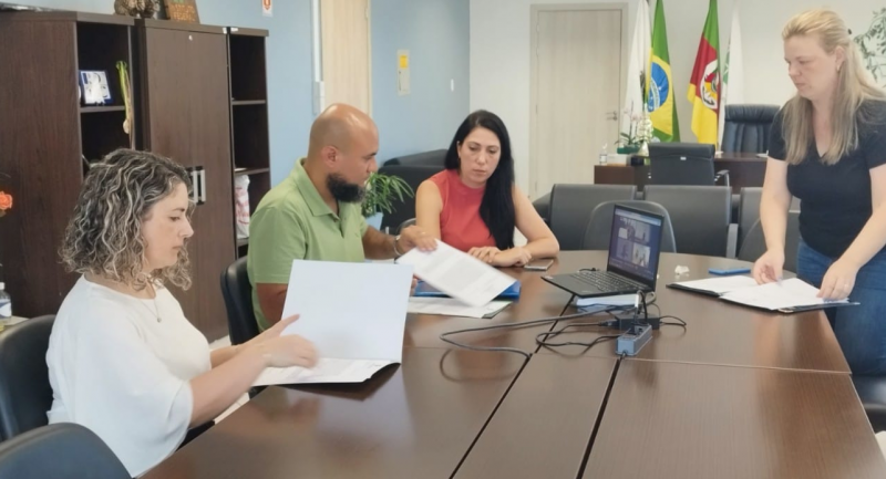 Foto: Ulisses dos Santos Gonçalves e Aline Silva Frota de Oliveira participaram da cerimônia de posse no Gabinete da Reitoria. Estavam presentes a Pró-Reitora de Ensino e Reitora em exercício, Patrícia Metz Donicht e a Coordenadora de Desenvolvimento de Pessoas, Cristiane Guerch Atarão.