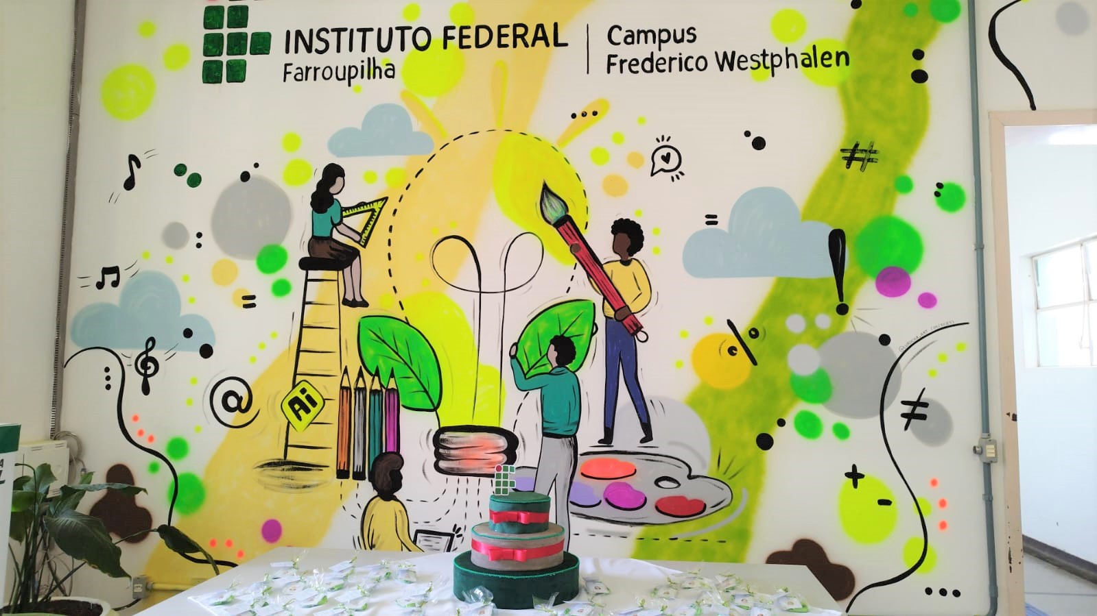 Foto: mural pintado por artista local em homenagem ao aniversário do Campus Frederico Westphalen