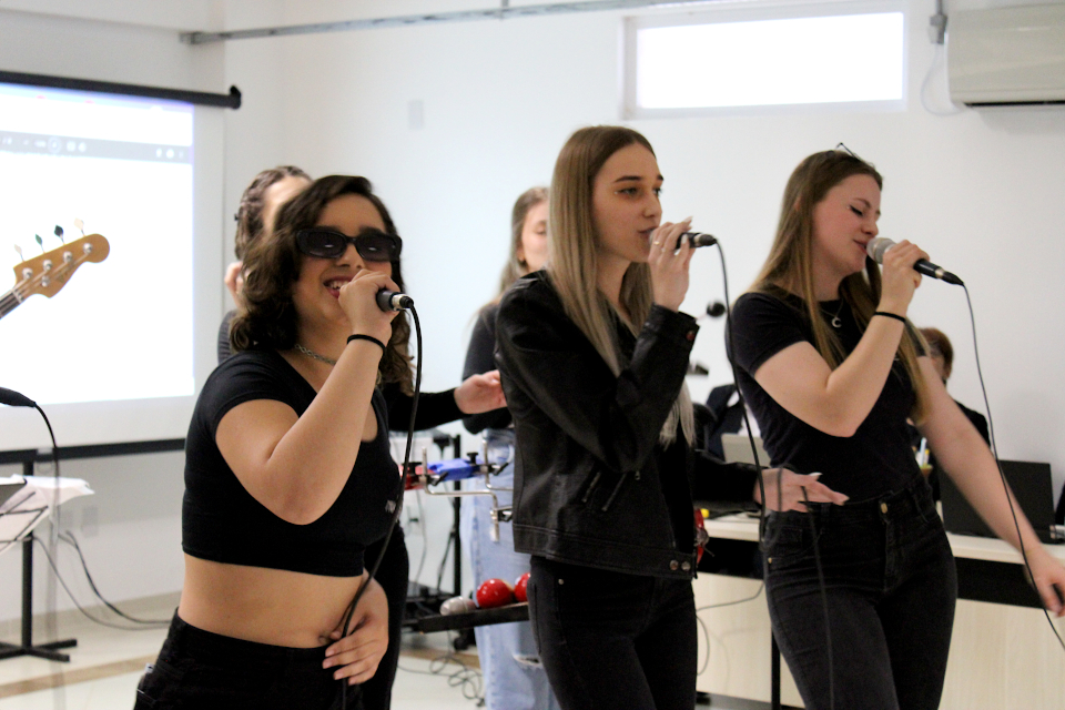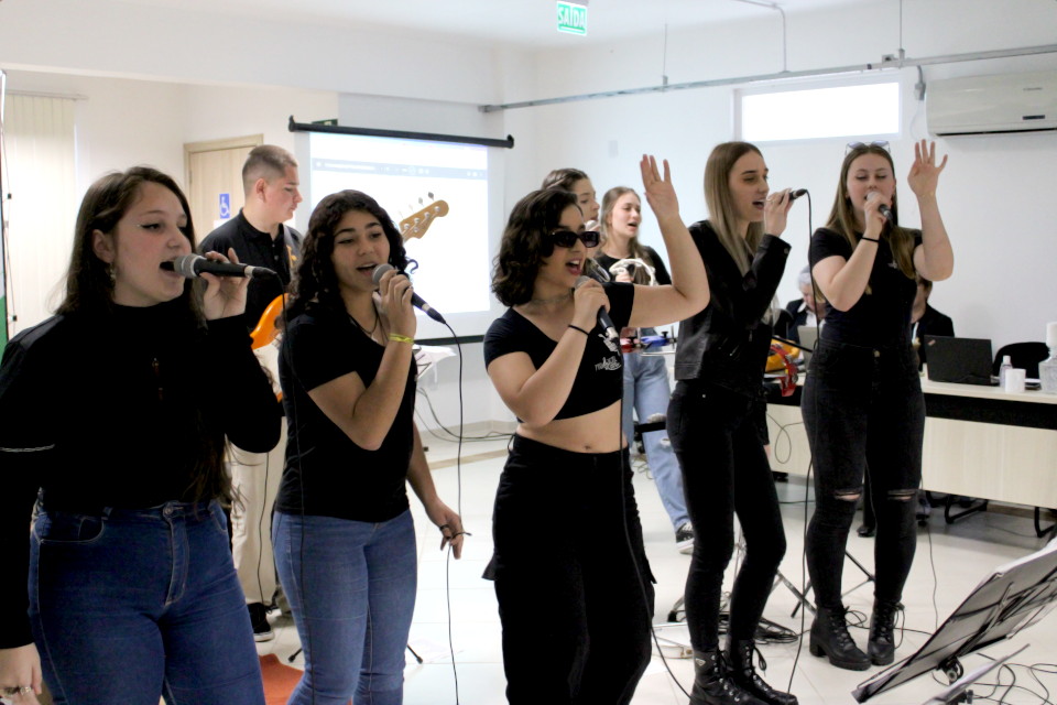 Ele citou o exemplo de uma ex-vocalista da banda, a Caroline Fuhr. “Ela era mais envergonhada. Se escondia atrás dos outros integrantes, sumia nos shows”, conta Sandro Amorim. Aos poucos, a estudante foi assumindo o protagonismo até se tornar a líder da banda – ela é a integrante mais antiga da atual formação do grupo.
