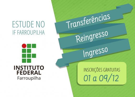 Estão abertas até esta sexta-feira (9), as inscrições para transferências, reingresso e ingresso em cursos técnicos e superiores do Instituto Federal Farroupilha. São ofertadas vagas em 11 municípios.