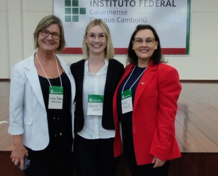 Foto: a ex-reitora do IFFar e atual diretora de Políticas e Regulação da Setec, Carla Jardim, a egressa do IFFar, Cândida Brandl, e a reitora do IFFar, Nídia Heringer (da esq. para dir.)