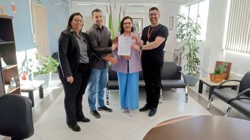 O documento foi entregue à reitora do IFFar, Nídia Heringer, no dia 5 de outubro, pelo coordenador de Inovação Tecnológica, Anderson Monteiro. Também participaram da entrega o pró-reitor de Pesquisa, Pós-Graduação e Inovação do IFFar, Arthur Frantz, e a coordenadora de Inovação Tecnológica Substituta, Thaís Baldissera.