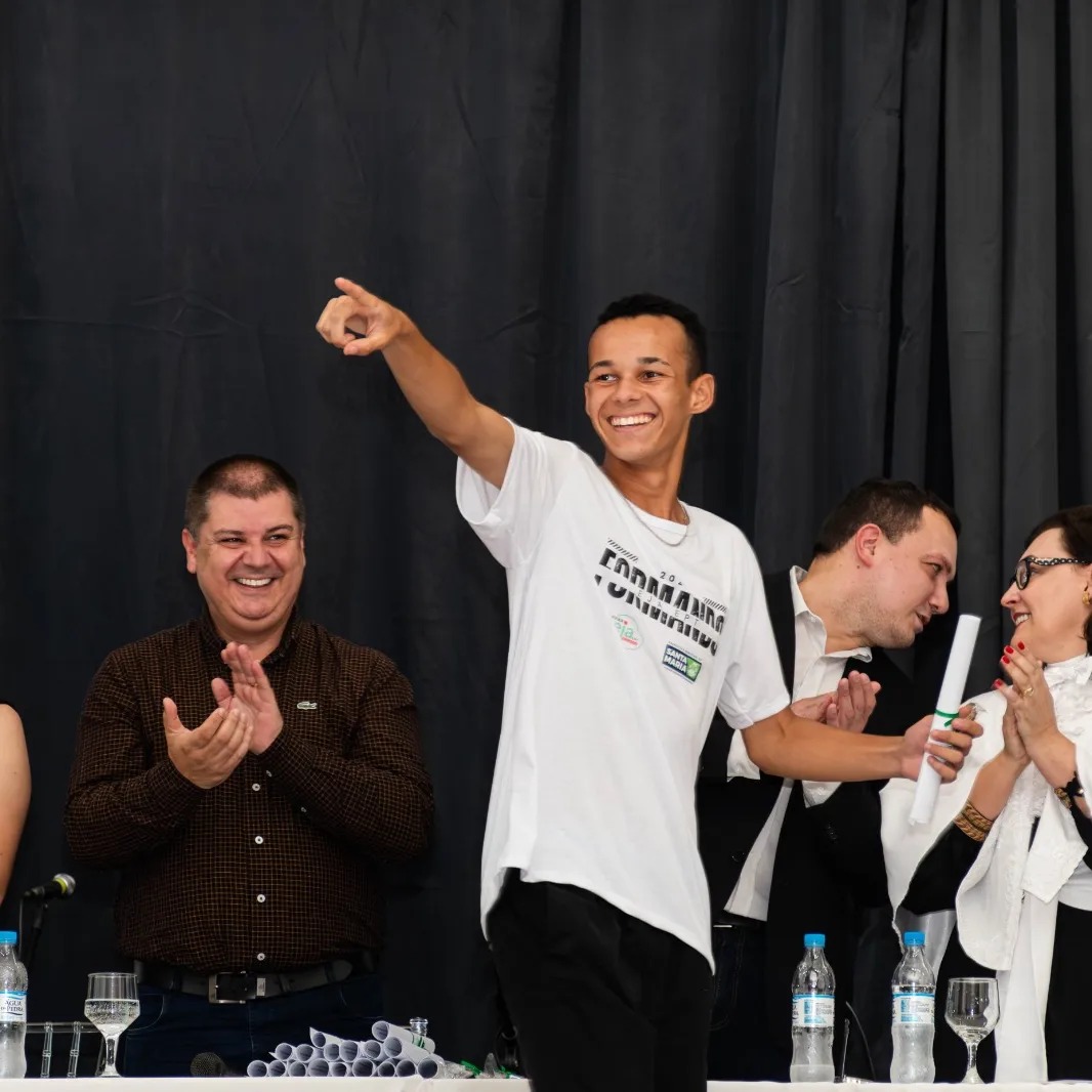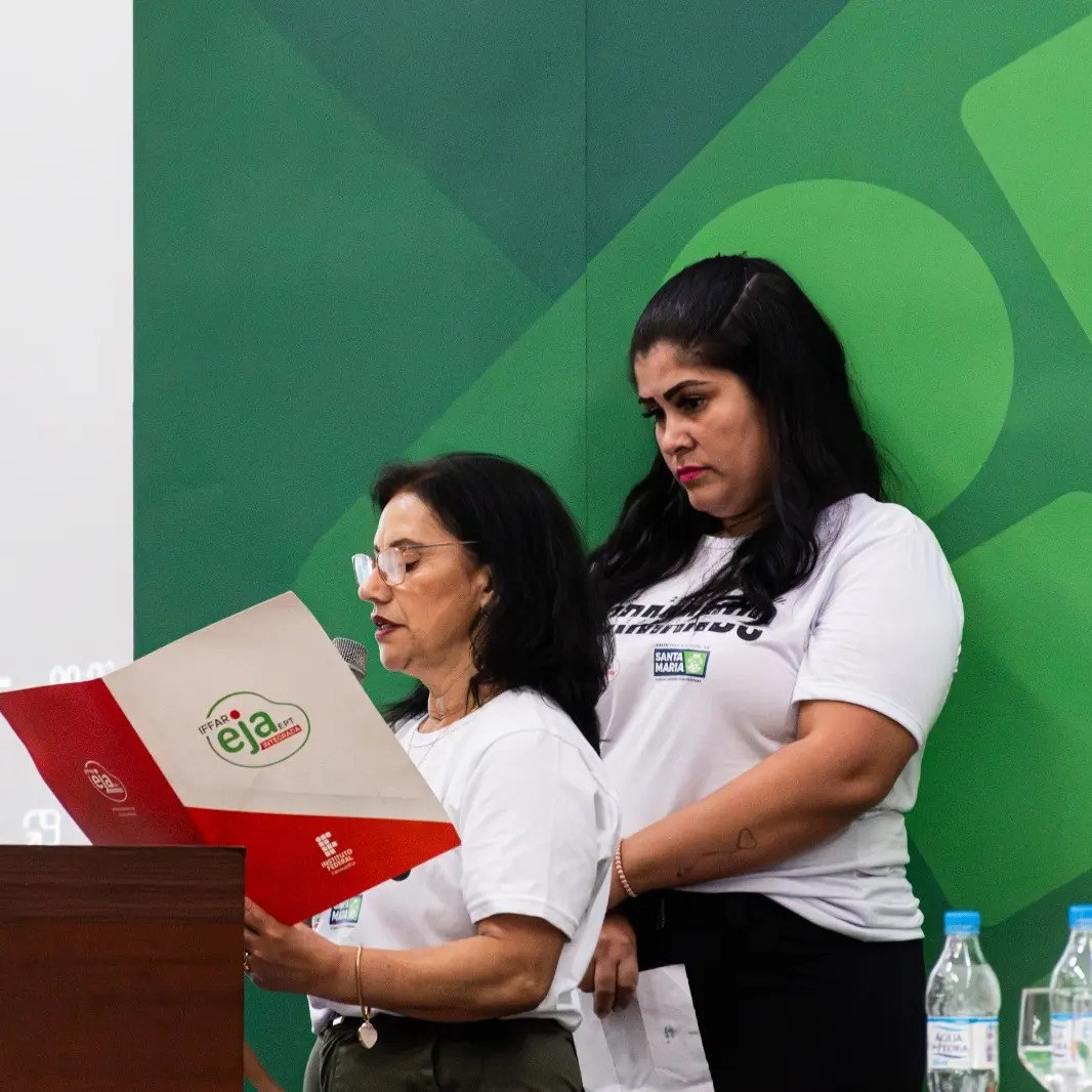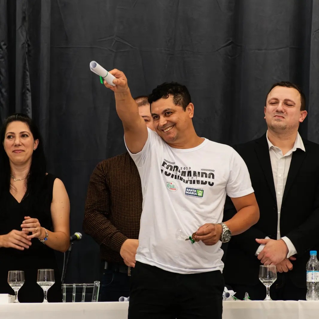 A solenidade teve a participação da reitora do IFFar, professora Nídia Heringer; do vice-prefeito de Santa Maria, Rodrigo Décimo; da secretária de Educação do município, Lúcia Rejane da Rosa Madruga; dos diretores gerais Rodrigo Carlotto (Campus Júlio de Castilhos) e Deivid Oliveira Dutra (Campus São Vicente do Sul); da pró-reitora de Ensino do IFFar, Patrícia Donicht; coordenadoras do EJA, professoras Cléia Macedo da Costa Tonin (IFFar) e Cristina Iop (SMED); além da promotora de Justiça Regional de Santa Maria, Rosangela Corrêa Rosa; e os presidentes Ronan Simioni, do Conselho Municipal de Educação e Givago Bitencourt Ribeiro, da Câmara de Vereadores de Santa Maria.