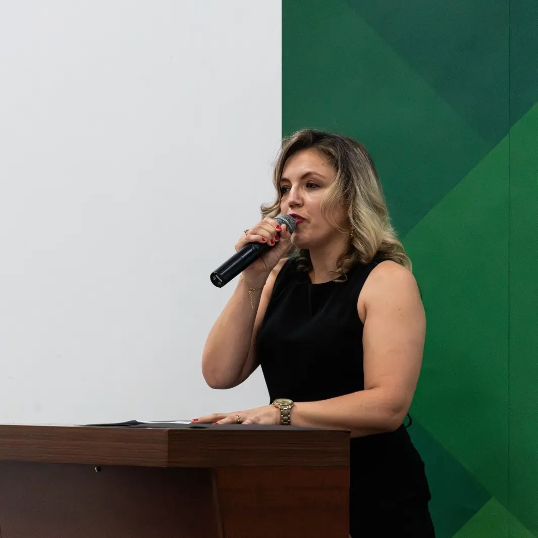 Professora Raquel, paraninfa, representando os professores da rede municipal
