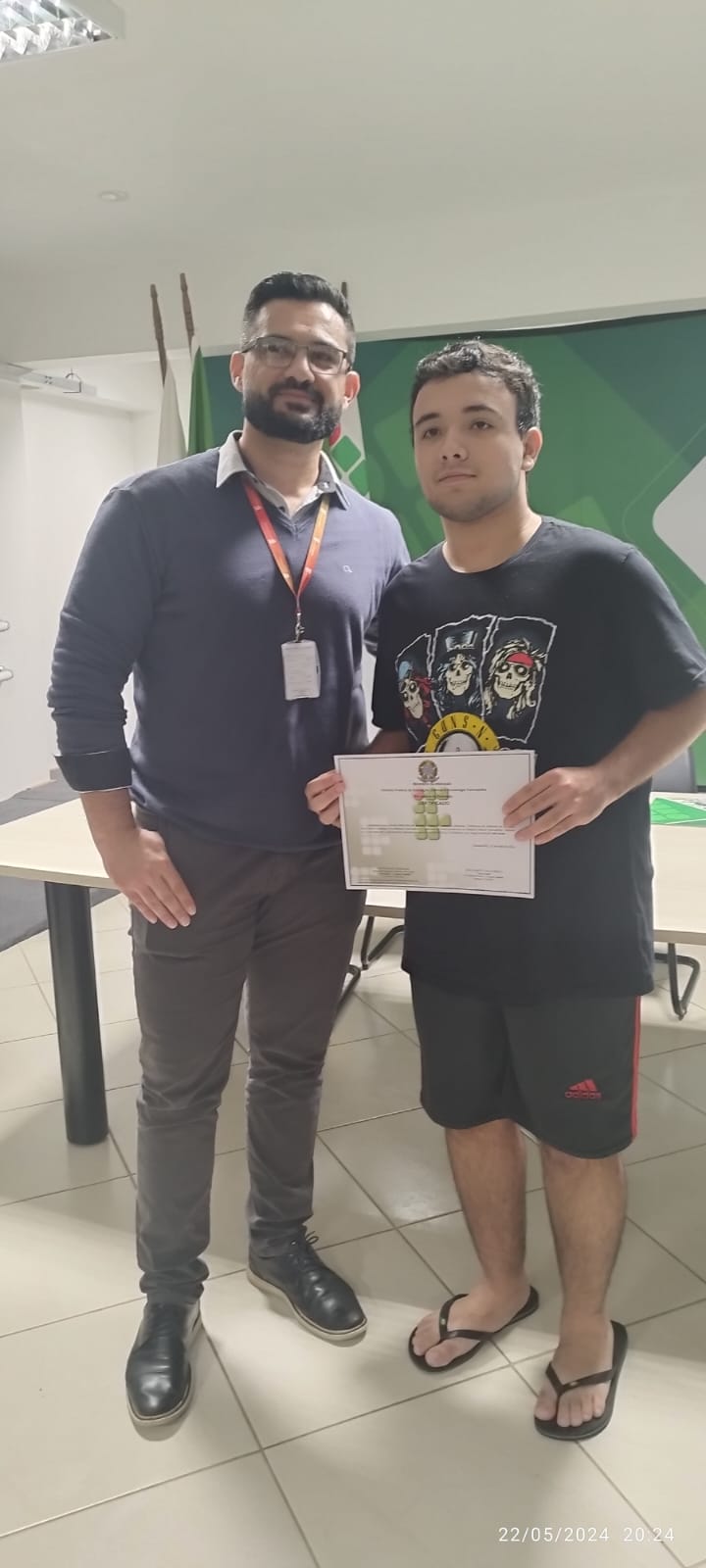 A entrega dos certificados ocorreu de forma presencial no Auditório da Reitoria do IFFar. A cerimônia teve início às 19h desta quarta-feira (22). Participaram da atividade alunos das duas turmas, a reitora do IFFar, Nídia Heringer, a pró-reitora de Extensão, Angela Marinho, o diretor-geral do Campus Panambi, Jorge Alberto Fonseca, o diretor de Pesquisa, Extensão e Produção do Campus Jaguari, Vinicius Soares Sturza, e o Coordenador do Programa Qualifica Mais EnergIF no IFFar, Adriano Marchesan.