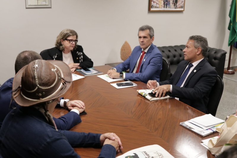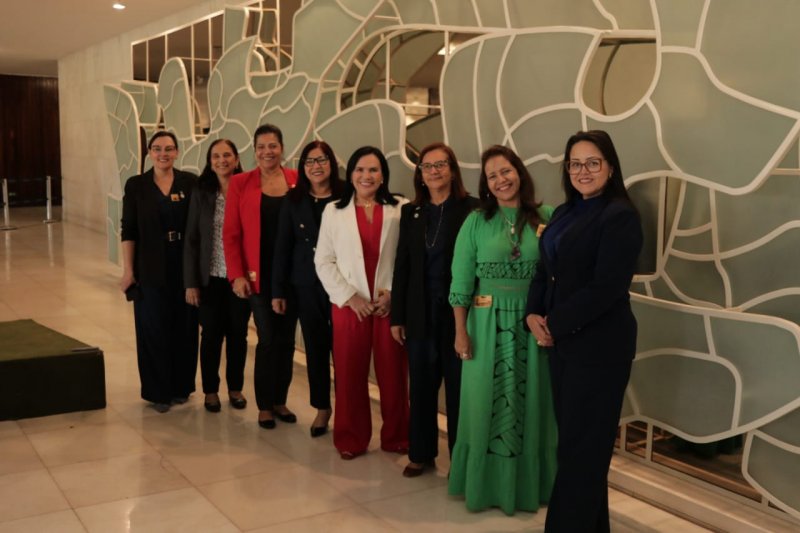 Foto: o presidente do Conif Elias Monteiro (de terno azul e gravata vermelha), junto dos vice-presidentes do Conselho, reuniu-se com a senadora Teresa Leitão