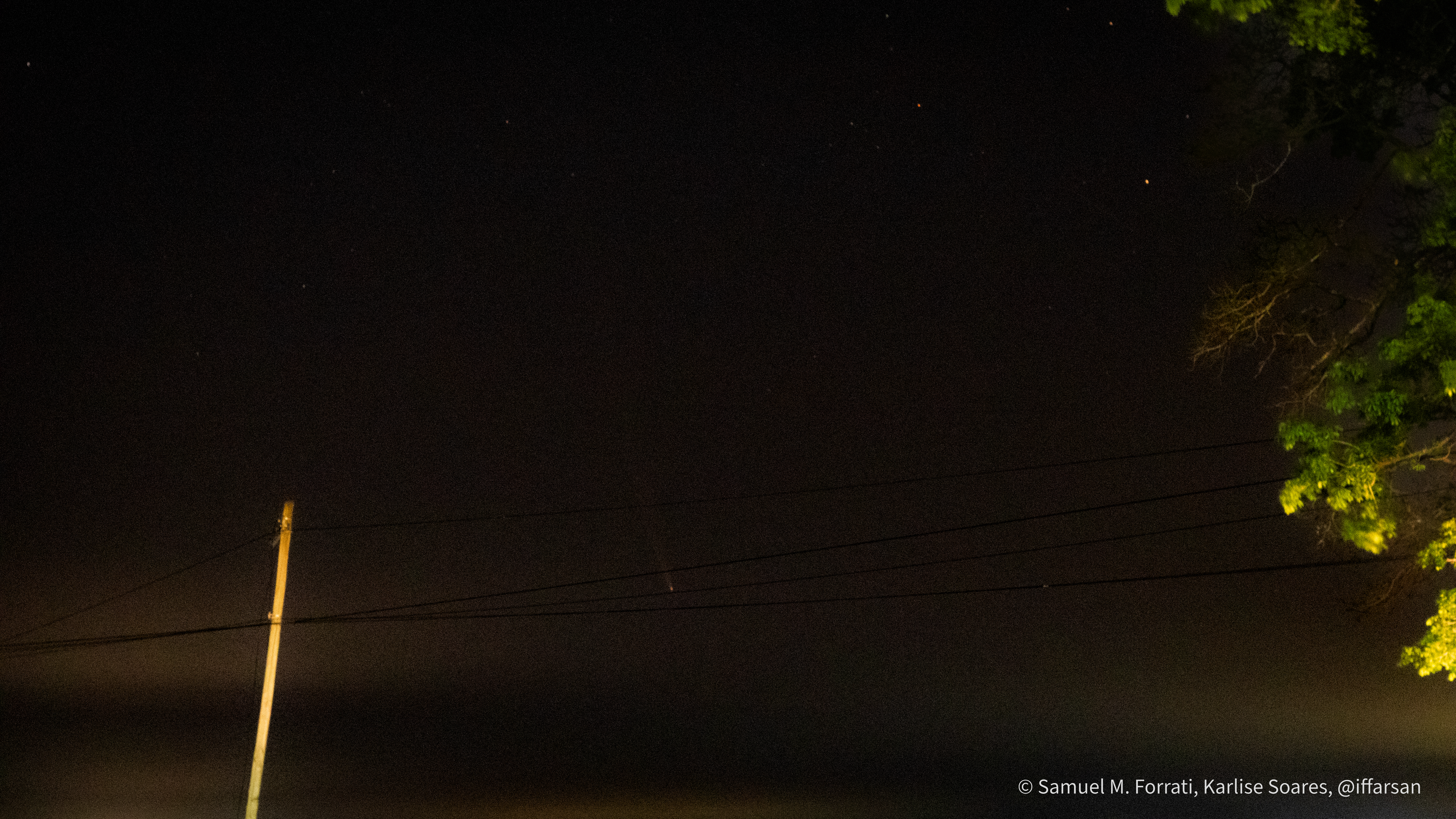 O Clube de Astronomia também produziu um vídeo timelapse documentando a trajetória do cometa. Além disso, nesta segunda-feira (30), os servidores também fizeram novos registros fotográficos, incluindo uma “impressionante” foto star trail (fotografia de longa exposição que registra a movimentação das estrelas). Veja o vídeo e as fotos abaixo.