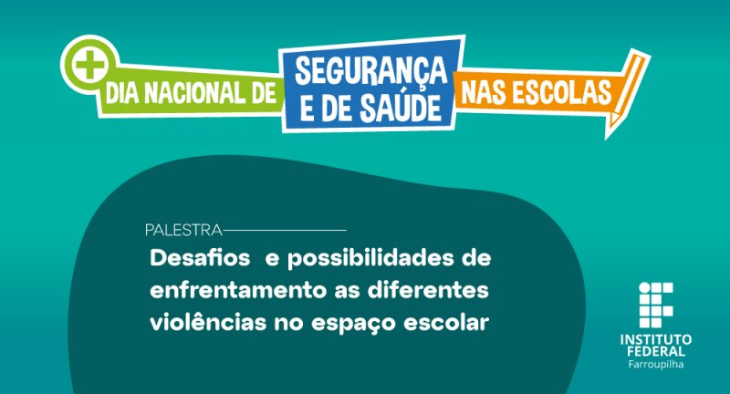 No dia 11 de outubro, a partir das 14h, o Instituto Federal Farroupilha (IFFar) promove uma live alusiva ao Dia Nacional de Segurança e Saúde nas Escolas. O evento virtual tem como tema "Desafios e Possibilidades de Enfrentamento das Diferentes Violências no Espaço Escolar".