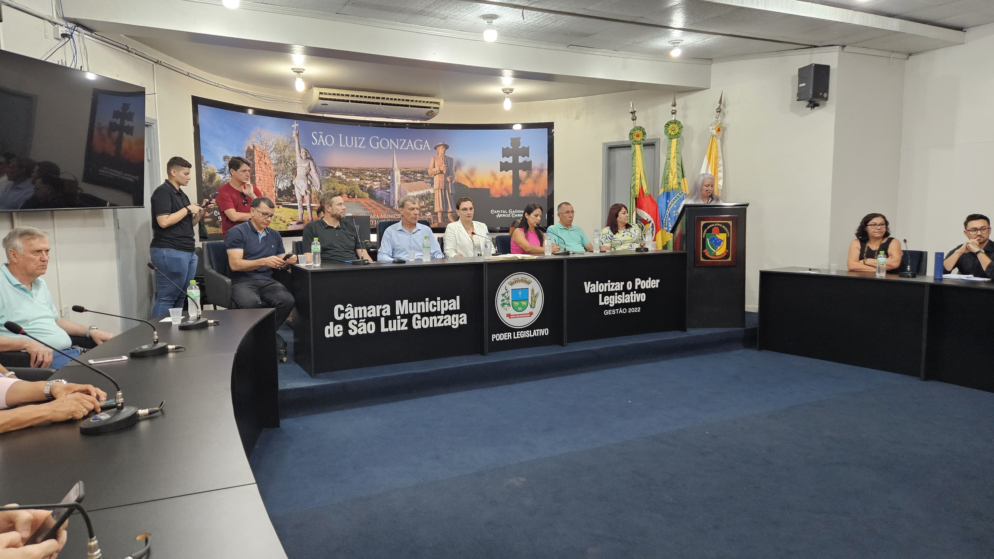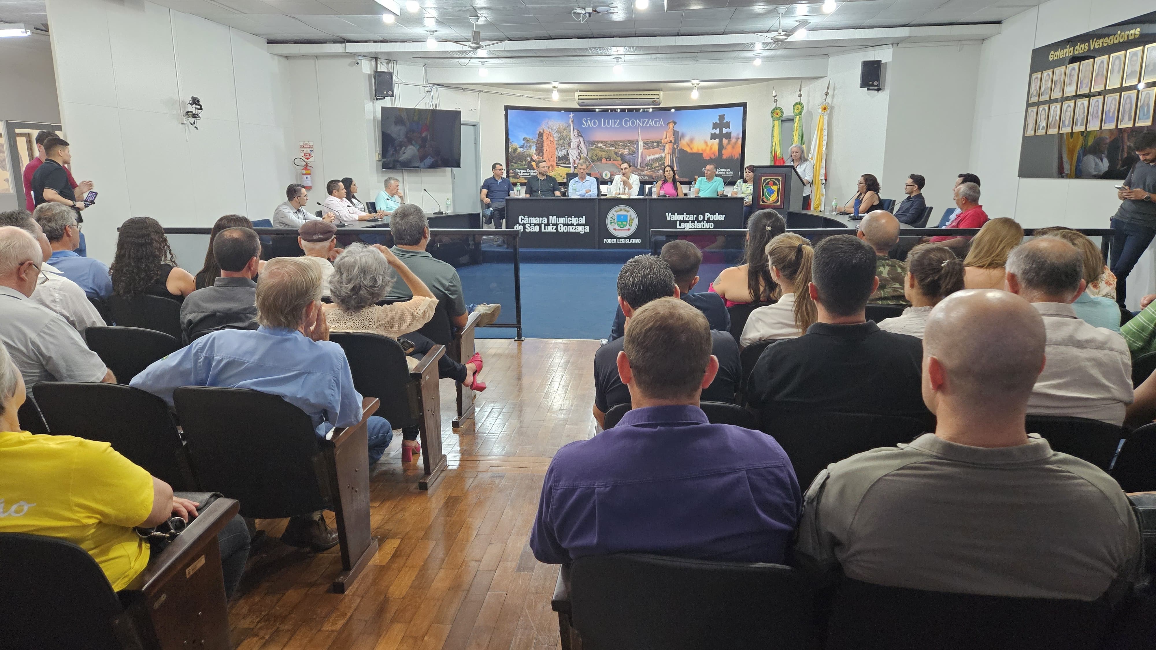 Plenária da Câmara de Vereadores de São Luiz Gonzaga lotada para acompanhar o evento que oficializou o início das obras do novo campus do IFFar. Foto: ARP/ IFFar