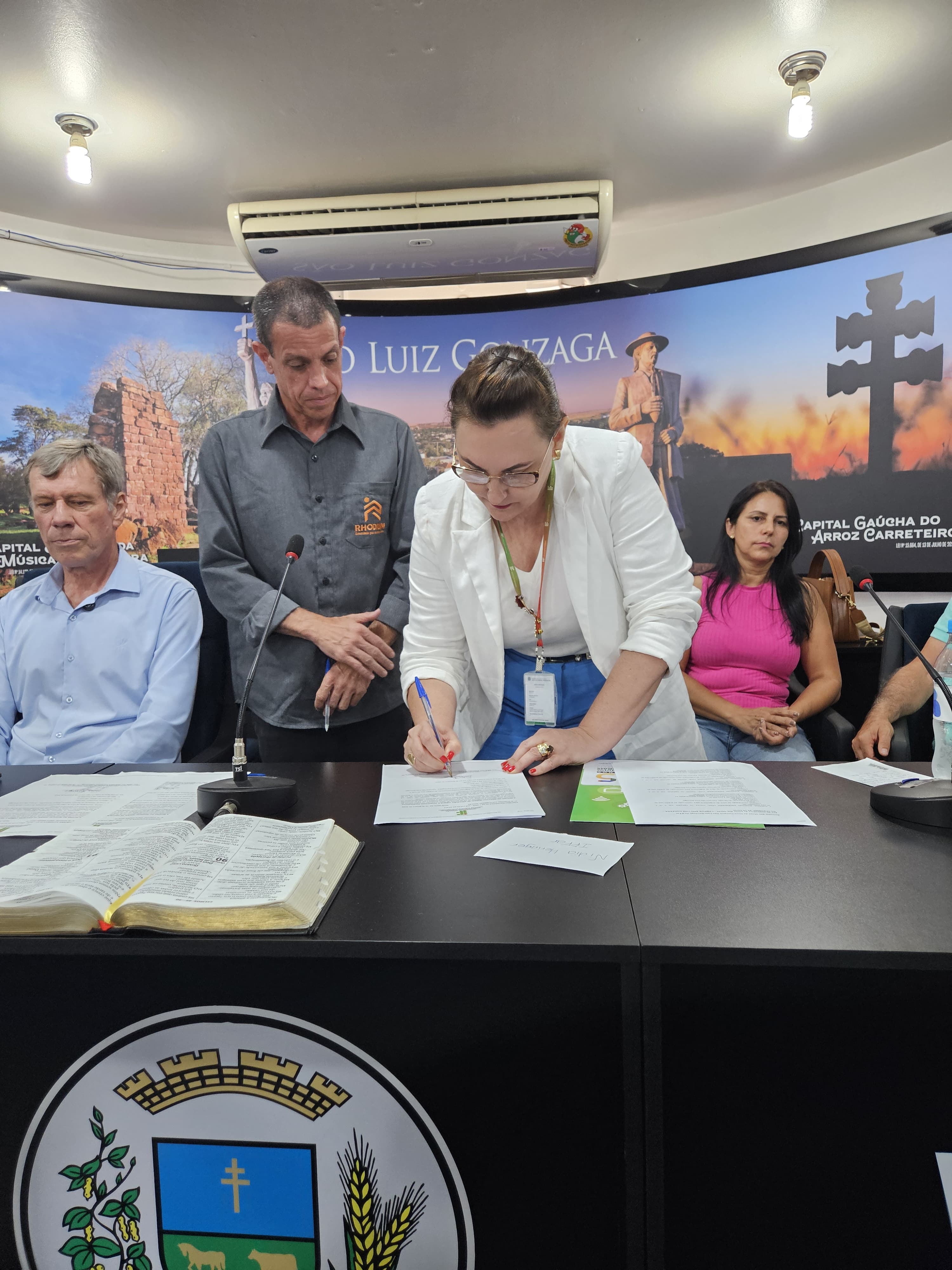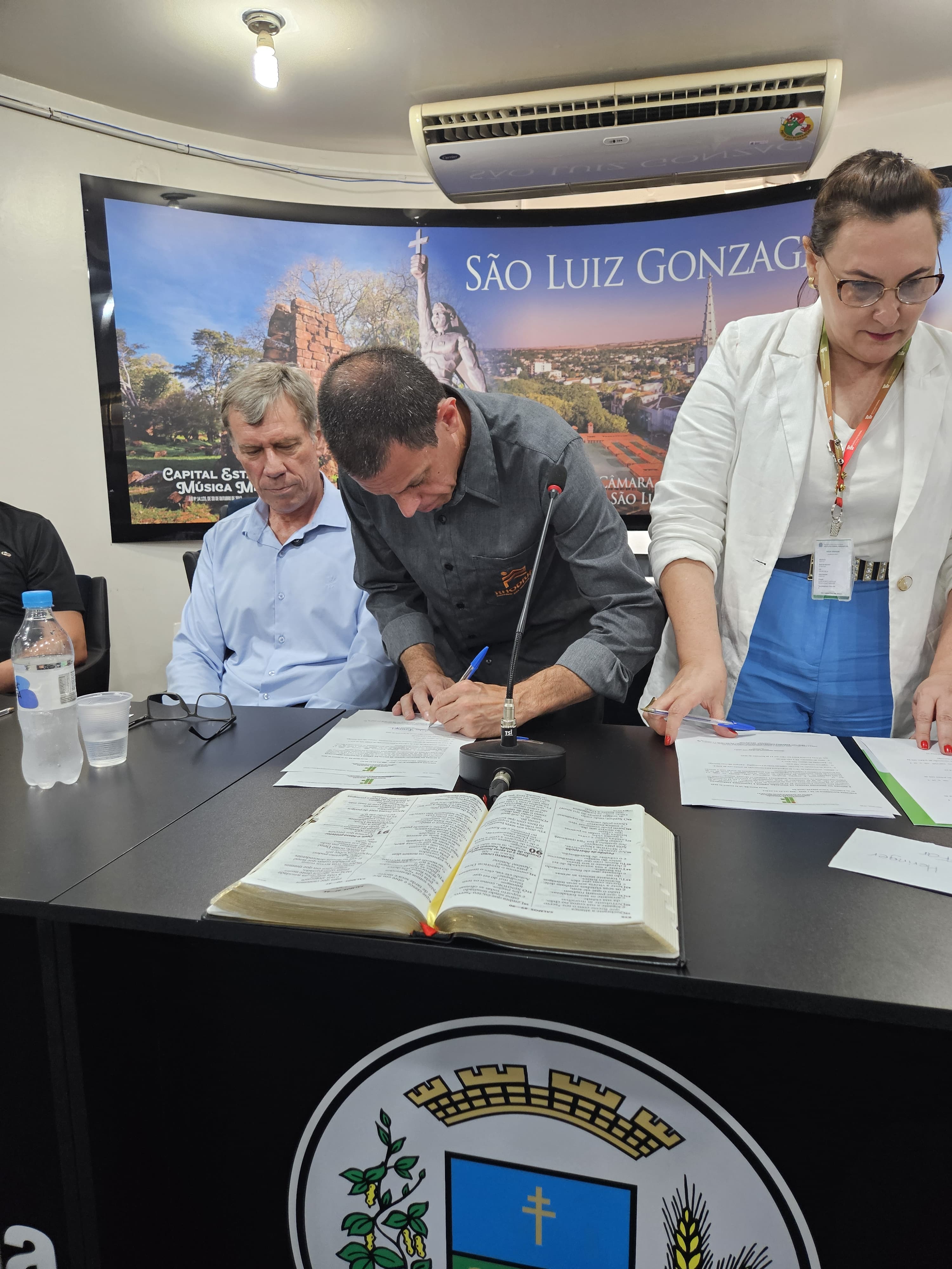 A comunidade de São Luiz Gonzaga comemorou, nesta sexta-feira (17), a assinatura da portaria que autoriza o início das obras do Campus do IFFar no município. A cerimônia, realizada na Câmara Municipal de Vereadores, contou com ampla participação de lideranças políticas, representantes institucionais e membros da comunidade local.