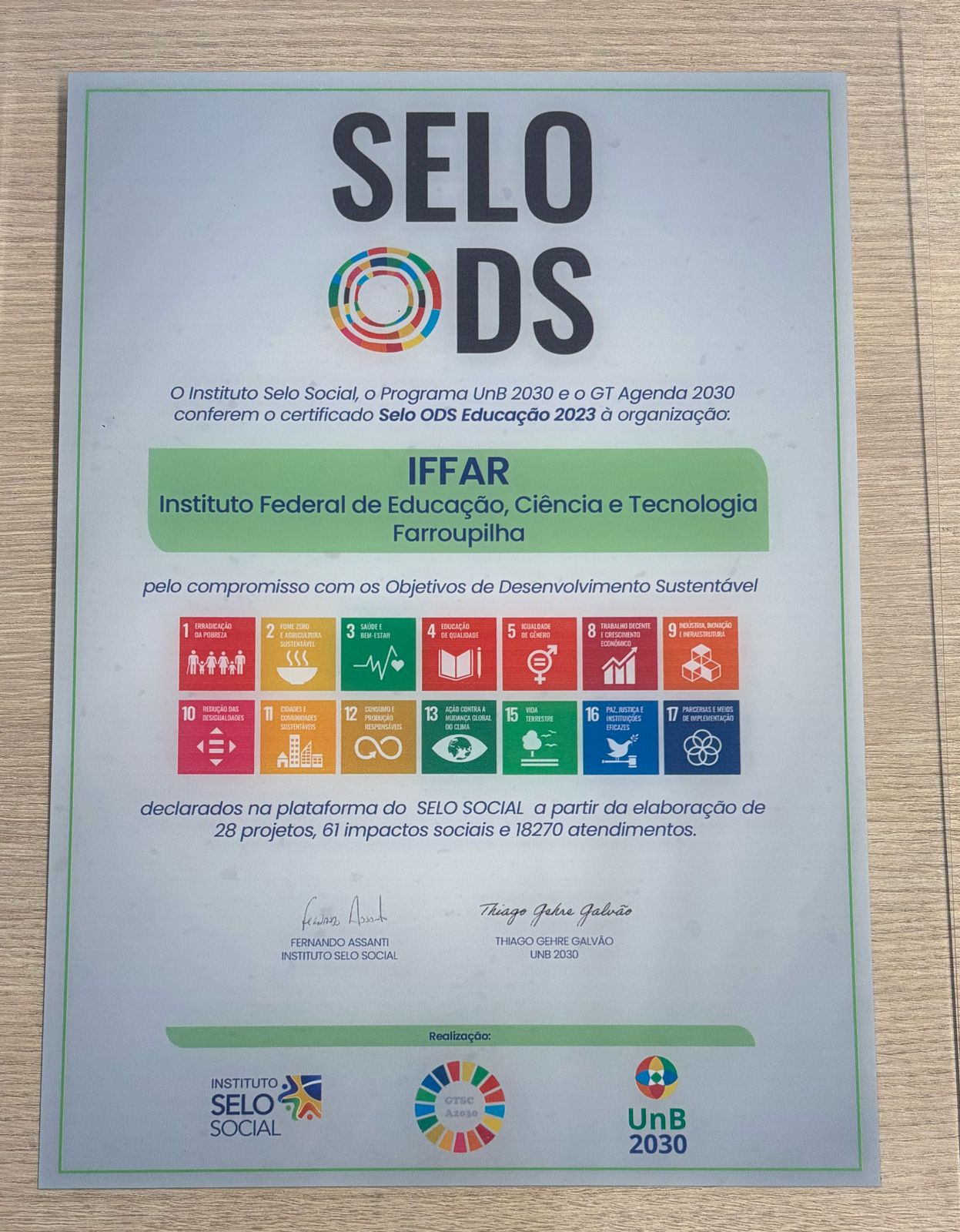 IFFar recebe Selo ODS Educação em Brasília (1ª edição do Selo ODS Educação)