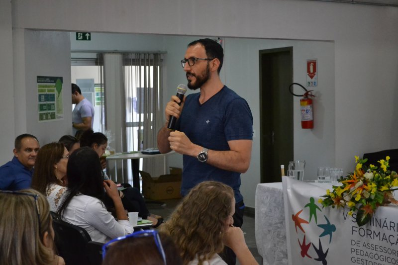 O professor Sidinei Cruz Sobrinho ministrou palestra sobre desafios e funções do gestor durante o V Seminário de Formação de Gestores e Assessores de Ensino do IF Farroupilha. O evento ocorreu entre os dias 15 e 16 de março no Auditório da Reitoria.