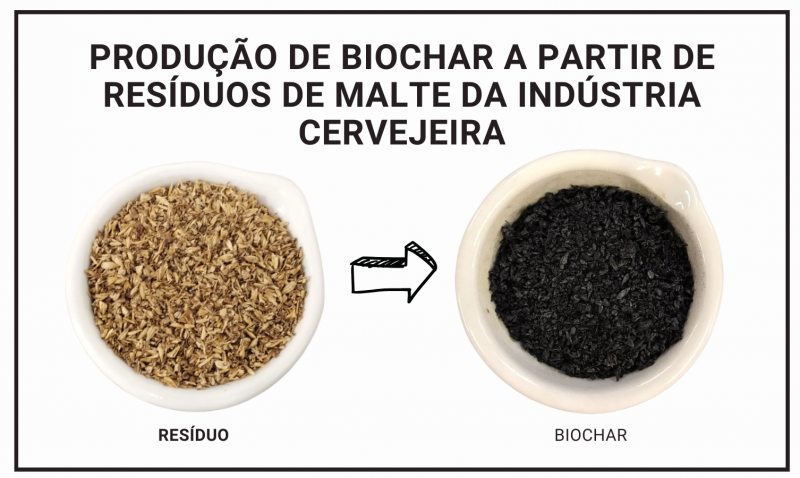 Imagem: figura demonstra transformação de resíduo em material que será utilizado para eliminar poluente da água (Felipe Ketzer/IFFar)