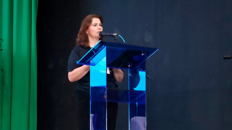 Professora Nídia Heringer, reitora do IFFar, durante a abertura da XVI Mept, no Campus Santa Rosa.