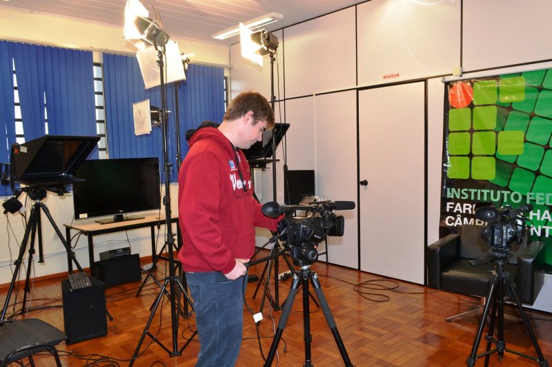 A equipe do “canal de entrevistas” (nome provisório do projeto) é enxuta: a Diretora de Ensino, Márcia Fink, que pauta os assuntos; a produtora cultural e jornalista, Stela Paris, e o aluno/estagiário Uianes Biondo, responsável pela gravação e edição. As entrevistas são realizadas no estúdio do Núcleo de Educação a Distância (NEAD), nas dependências do próprio campus.