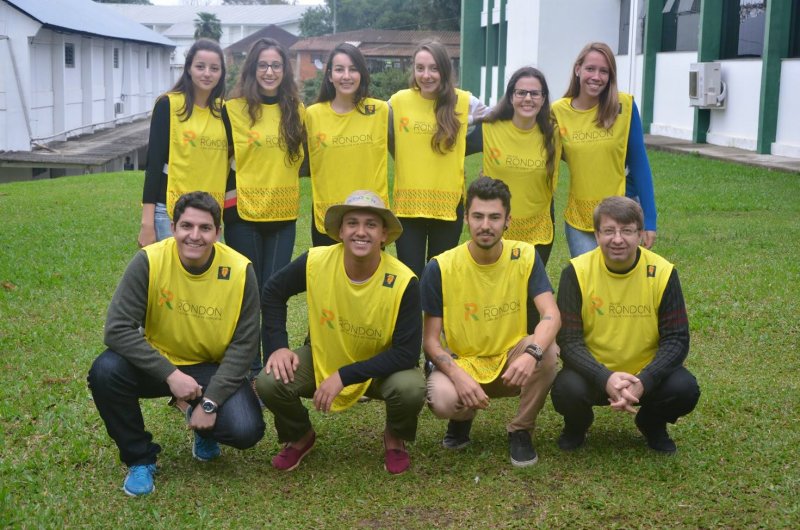Foto: rondonistas posam para foto no campus São Vicente do Sul, antes da partida